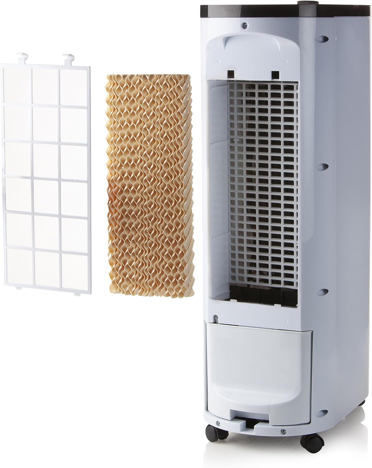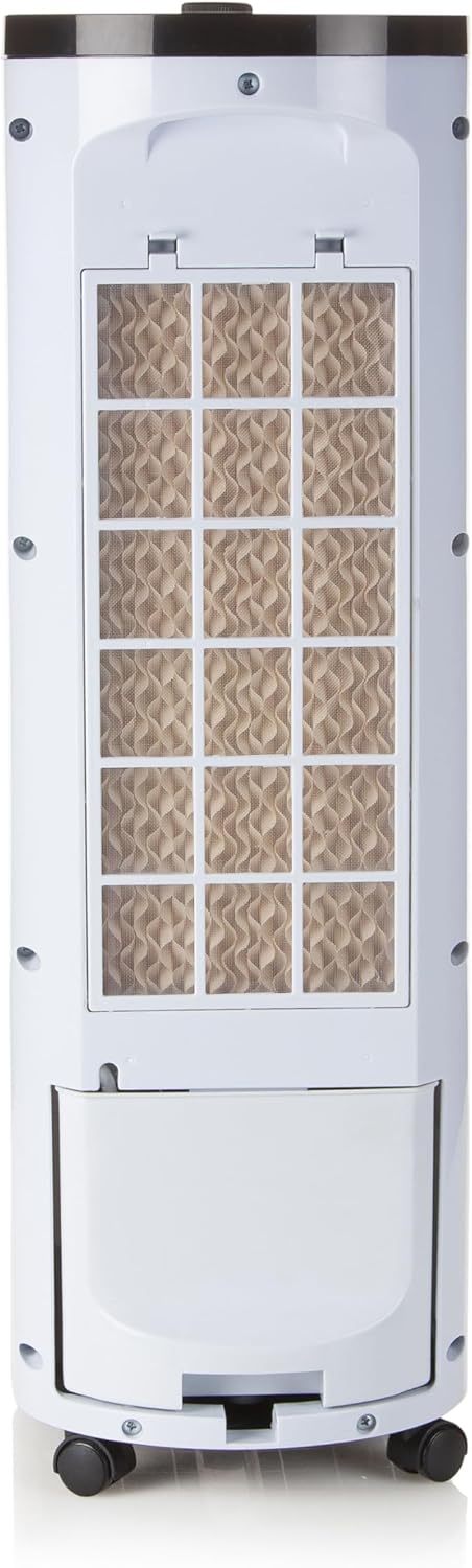 Multifunkionales Gerät : Luftkühler (Kaltluft), Ventilator und Luftbefeuchter Hohe Kühleffizienz durch Kühlmembran mit Wabenstruktur: 300 m³/h Wassertank mit 4 Liter Fassungsvermögen und Sichtfenster Timer bis 2 Stunden (120 Min.) 3 Geschwindigkeiten (niedrig - mittel - hoch) Luftfiltersystem mit Negativ-Ionen Drehbewegung verbreitet kühle Luft Hochwertiges waschbares Filtersystem Rollen und Griff für einfaches Umstellen; 230 V - 50 Hz -70 W | قیمت یورویی : 101.65€