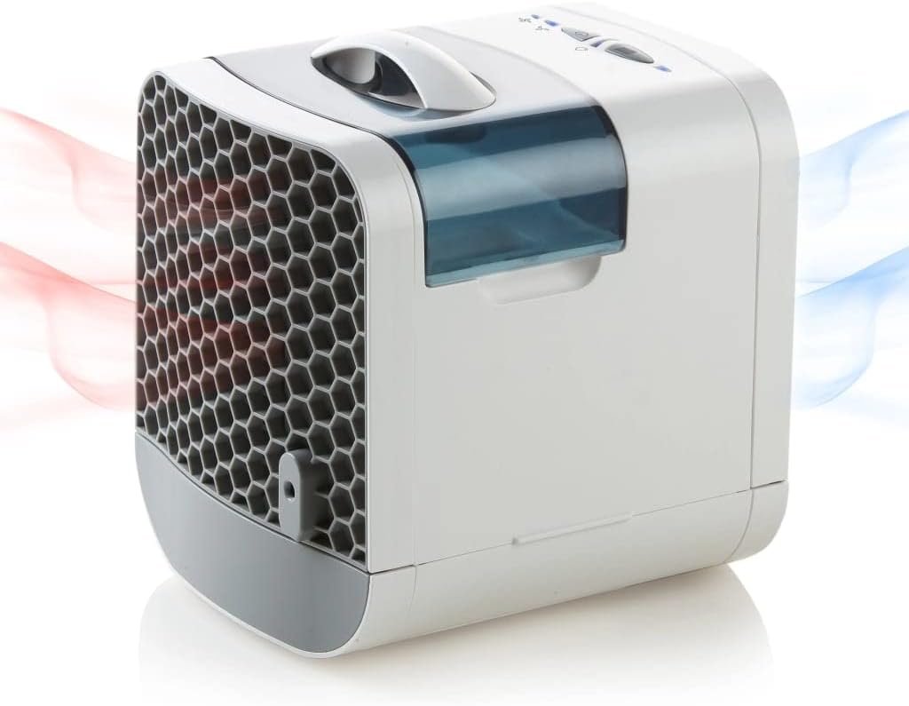 Hohe Kühleffizienz durch Kühlmembran mit Wabenstruktur 2 Geschwindigkeiten Kompakt, praktische Aufbewahrung Mechanische Bedienung abnehmbarer Wassertank 750 ml 230 V - 50 Hz - 6 W | قیمت یورویی : 39.99€