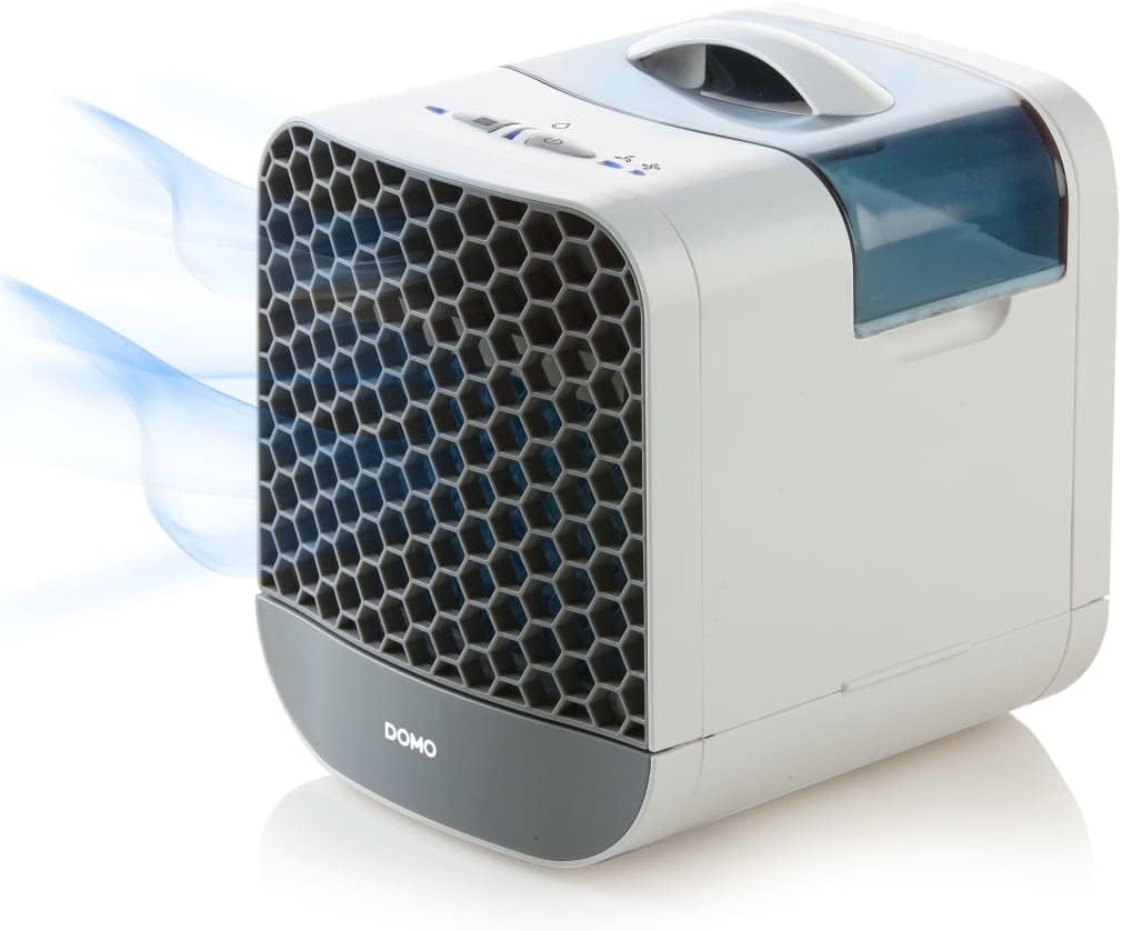DOMO DO154A Luftkühler Cube mit Kühlelement لینک آمازون : https://www.amazon.de/dp/B07DVFTFYN?th=1&psc=1 راندمان خنککنندگی بالا به لطف غشای خنککننده لانه زنبوری ۲ سرعته فضای ذخیرهسازی جمعوجور و کاربردی عملیات مکانیکی مخزن آب قابل جابجایی ۷۵۰ میلیلیتر ۲۳۰ ولت - ۵۰ هرتز - ۶ وات