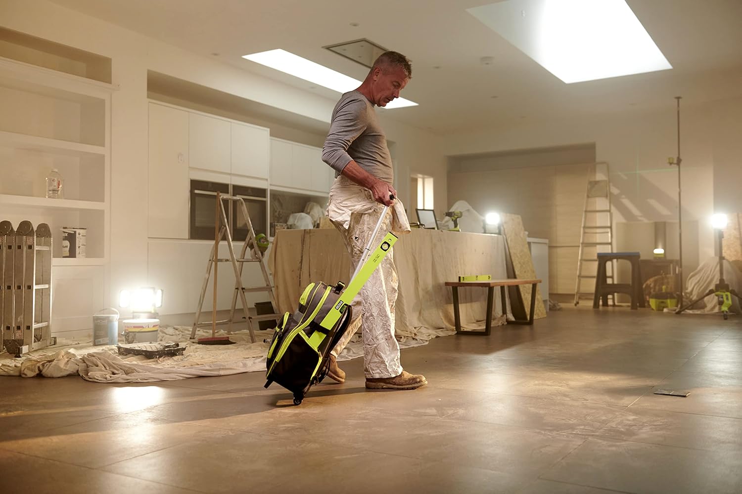 RYOBI Werkzeug-Rucksack mit teleskopierbarem Griff und Rollen, ideal einsetzbar im nassen oder staubigen Arbeitsbereich wie z.B. auf der Baustelle 52 cm langer, teleskopierbarer Griff und Rollen für einen sicheren und bequemen Transport Stabiler und wasserfester Boden, Vertikaler, gepolsteter Innenteller mit Laptopfach und verstellbarem Wasserwaagen Band Zwei breite Innentaschen mit Deckel und eine mit Reißverschluss, doppelseitig, zusätzlicher Innenteller für Handwerkzeuge für mehr Ordnung Widerstandsfähiger 600-Denier Polyester Korpus und 1680-Denier Polyester Taschenmaterial Gepolsterte Schultergurte und gepolsterter Griff für maximalen Comfort Lieferumfang: RYOBI Werkzeug-Rucksack RSSBP2 | قیمت یورویی : 97.82€
