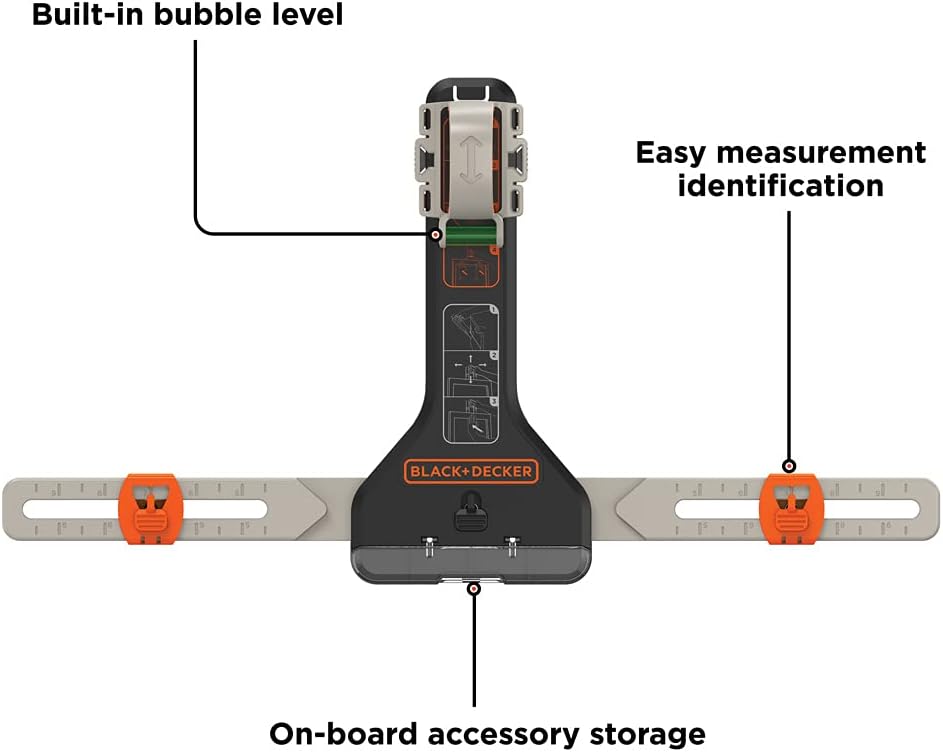 All-in-One-Lösung: Das Aufhängewerkzeug ermöglicht es Ihnen, die Nagel-/Lochplatzierung zu visualisieren, die Wand präzise zu markieren und das Bild beim ersten Mal richtig zu positionieren. Hinweis: Messen Sie den Dornmaß, die Querbohrung und die Dicke Ihrer Tür, um sicherzustellen, dass Sie die richtige Passform finden. Vielseitig einsetzbar – Für den Einsatz auf Einzel- und Doppelrahmen bis 40,6 cm. 20 Zoll und bis zu 2,7 kg. Eingebaute Wasserwaage – sorgt für ein gleichmäßiges, professionell aussehendes Display. Aufbewahrung an Bord – Halten Sie Zubehör wie Nägel, Schrauben und Befestigungselemente an einem praktischen Ort zusammen. Lieferumfang: (1) BDMKIT101C MarkIT Bilderaufhängungswerkzeug, (30) Befestigungselemente. | قیمت یورویی : 28.98€