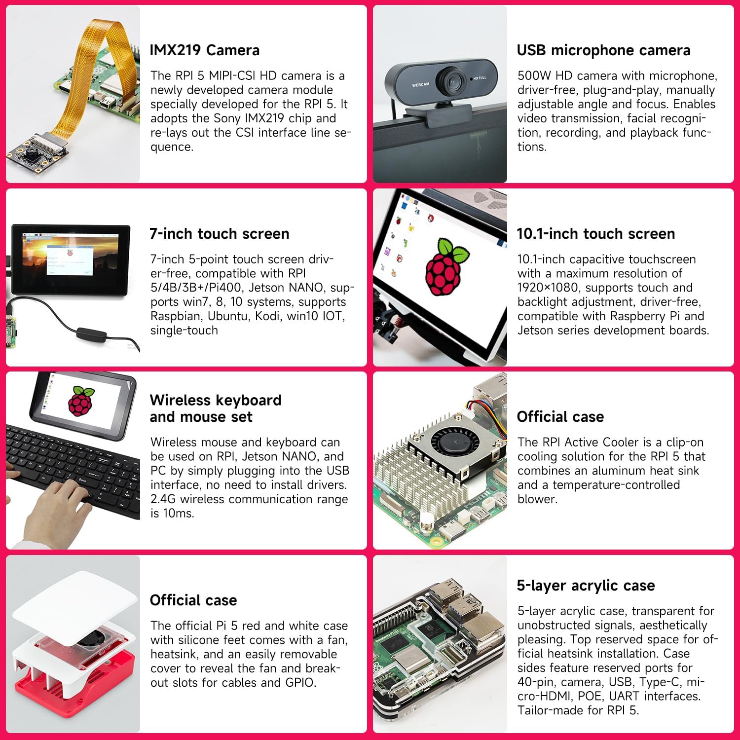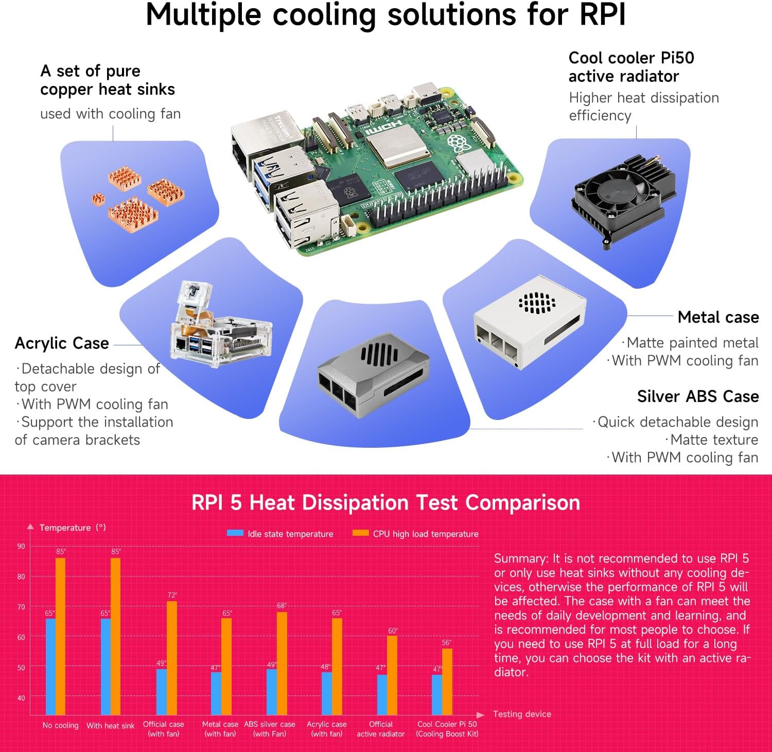 Raspberry Pi 5 Starter Kit 2GB,64GB SD Card,Pi 5 Case Official Active Cooling, 27W 5.1V 5A USB C Power Supply, HDMI Cable Ubuntu20.04 ROS2 (2GB-Official Cooler Kit) | قیمت یورویی 175€