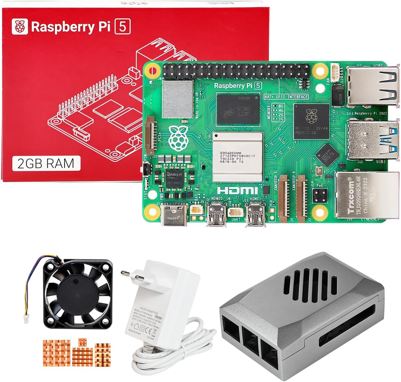 Yahboom Raspberry Pi 5 Developer Kit 2GB + PD Power Supply + ABS Case (with Fan) + Heat Sink Ubuntu20.04 ROS2 for AI Programming Python (2GB-Basic Kit) | قیمت یورویی 143€