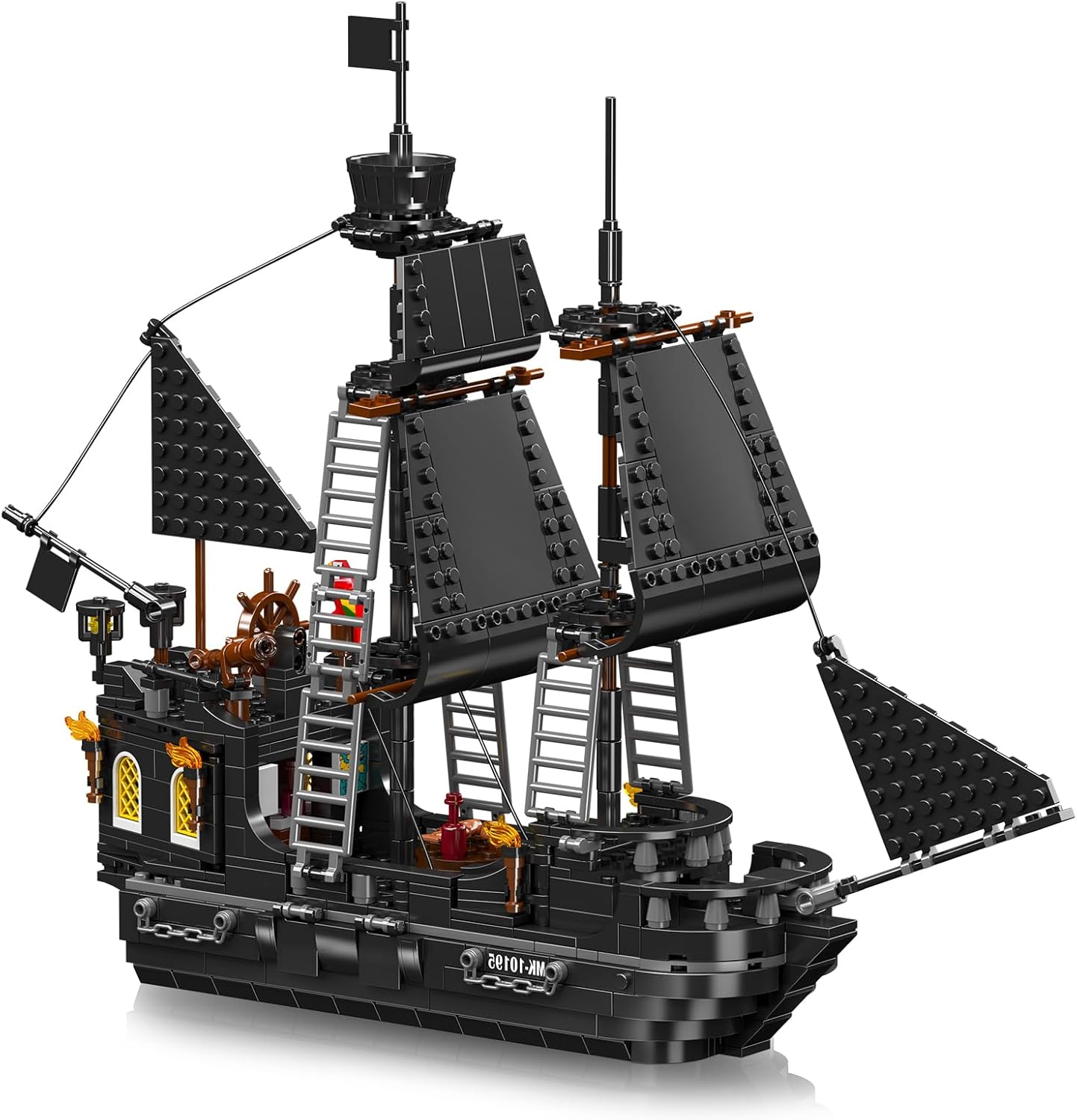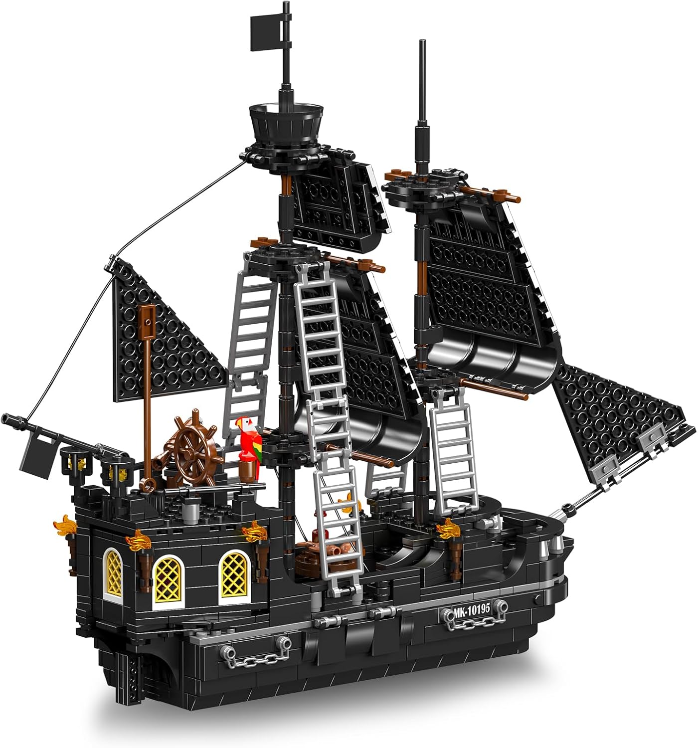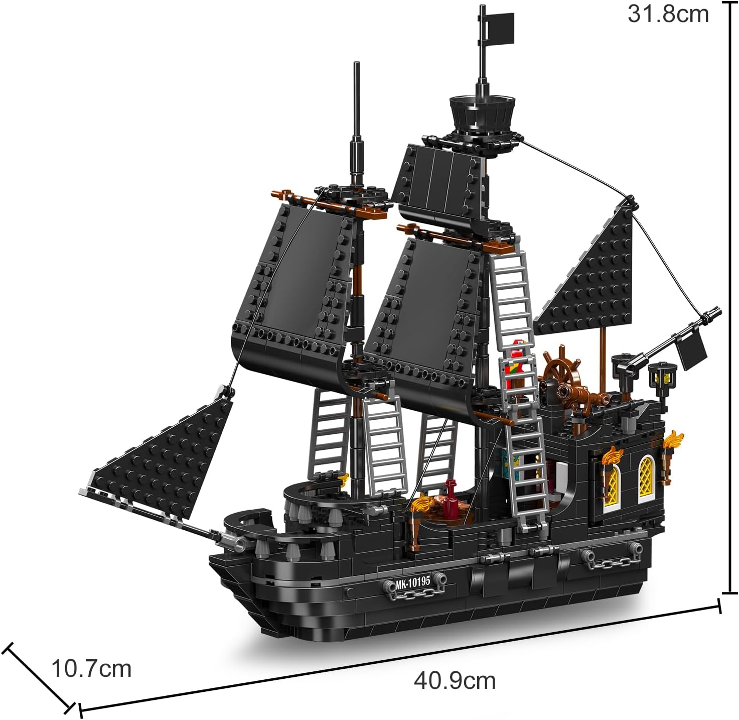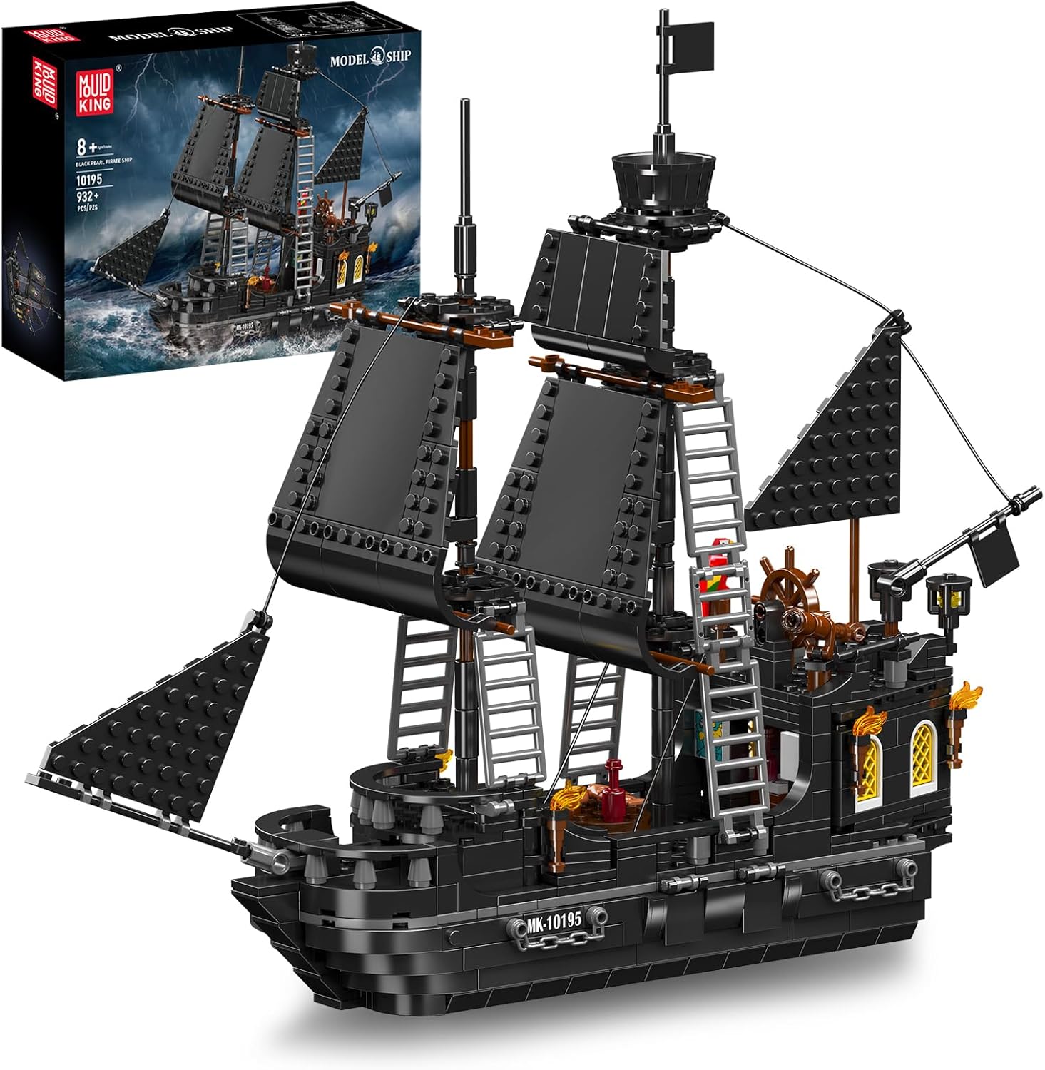 Mould King 10195 MOC Black Pearl Piratenschiff Klemmbausteine Bausatz,Technik Schwarze Segel-Kriegsschiff Bausteinspielzeug STEM Technik Schiff Klemmbausteine Bausatz Modell(932+Teile ) | قیمت یورویی 45€