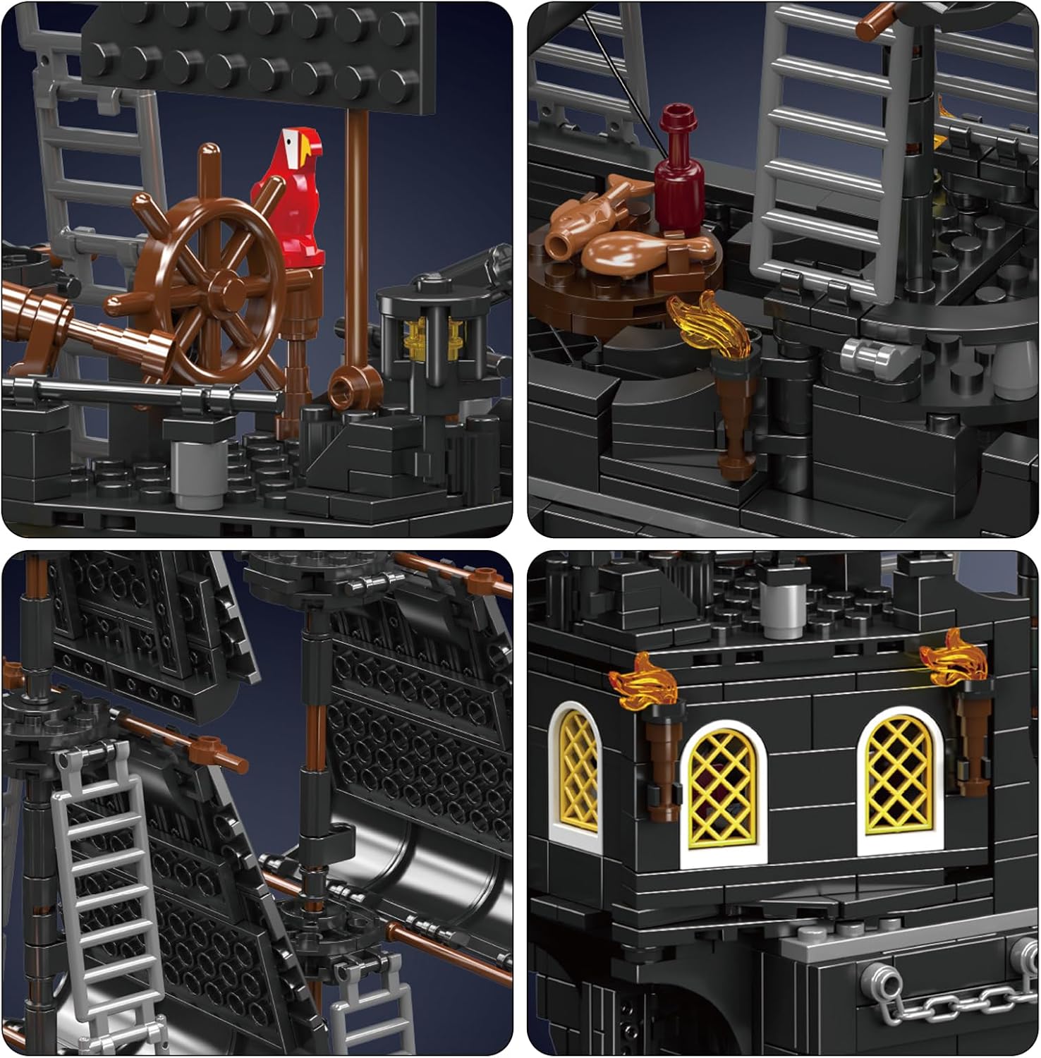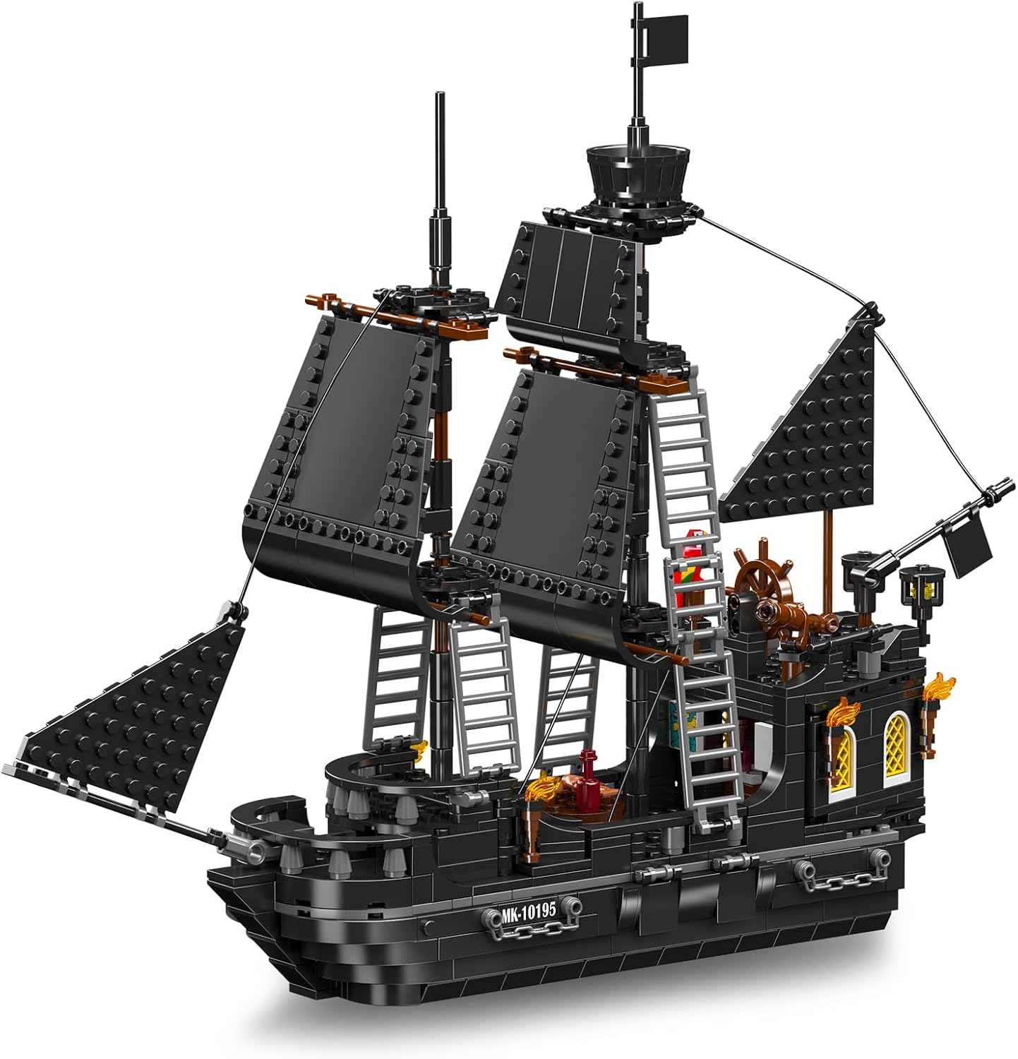 Mould King 10195 Dieses MOC Piratenschiff-Bausteinmodell ist inspiriert von der legendären Schwarzen Segel-Kriegsschiff und verfügt über schwarze Segel, Masten, ein Steuerrad und viele weitere Details. Tauche ein in das goldene Zeitalter der Piraten und erlebe ein aufregendes Seeabenteuer! Der Schiffsrumpf ist hochrealistisch gestaltet und enthält bewegliche Elemente wie ein drehbares Steuerrad, Leitern, Decks und Kabinen, die die Struktur eines echten Piratenschiffs nachbilden. Nach dem Zusammenbau kann das Modell sowohl als interaktives Spielzeug als auch zur Dekoration und Sammlung genutzt werden. 【Lernspielzeug für Bauwissenschaften】 Das Spielzeugset enthält viele Bausteine, alle Komponenten sind sortiert und sorgfältig verpackt, damit sie nicht verloren gehen. Eine Montageanleitung ist enthalten, sodass Sie mit jedem Schritt beginnen können. Kompatibel mit den meisten ähnlichen Bausteinen auf dem Markt, mit starker Skalierbarkeit. Das beste Heimlernspiel für alle. Es wird eine großartige Eltern-Kind-Zeit sein, um mit den Kindern zu spielen. 【Bestes Pädagogisches 】 Dieser Bausatz ist ein tolles für Jungen und Mädchen zum Valentinstag/Geburtstag/Vatertag, insbesondere für Kinder, Jugendliche, Erwachsene ab 8, 9, 10, 12, 14 Jahren und älter. Sie sind konsistent, kompatibel, leicht zu verbinden und fallen nicht leicht auseinander. Er hat alle wünschenswerten Eigenschaften eines zu einem erschwinglichen Preis und ist ein tolles für Geburtstag/ Kindertag/ Weihnachten/ Ostern. 【Hochwertige bunte Schachtel】: Wenn Sie mit Ihrem Kauf nicht zufrieden sind, bieten wir Ihnen eine 1-monatige Geld-zurück-. Jedes einzelne unserer Produkte wird von einer Maschine aufgenommen, und die Verpackung wird erst bestätigt, wenn drei Tests durchgeführt wurden. Wenn Ihrem Bausatz noch Teile fehlen, kontaktieren Sie uns bitte. Wir senden Ihnen die fehlenden Teile zu, vielen Dank im Voraus. | قیمت یورویی : 45€
