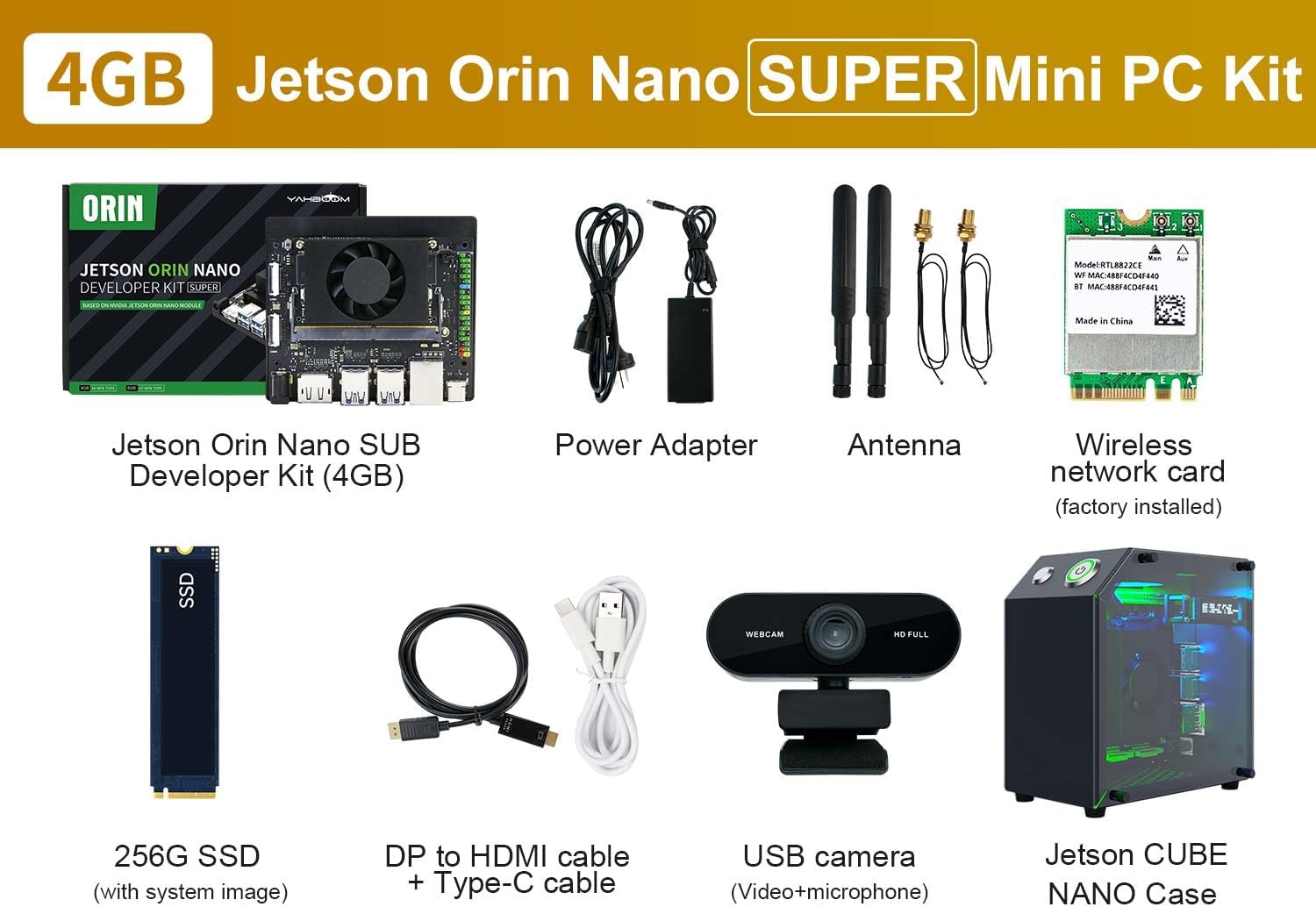 Jetson Orin Nano SUPER 4GB Development Board Kit 34TOP, with Jetson Case, RGB Cooling, USB Microphone Camera, Ubuntu22.04 (Orin Nano 4GB Mini PC Kit) | قیمت یورویی 519€