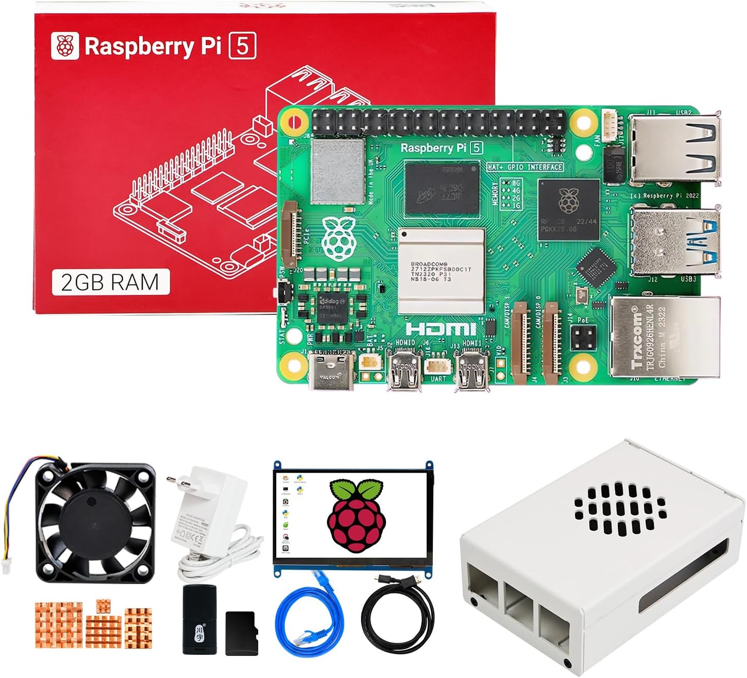 Yahboom Raspberry Pi 5 Developer Kit 2GB+IPS HD 7-inch Display,Case (with Fan)+PD Power Adapter,Heat Sink Ubuntu20.04 ROS2 for Robot AI (2GB-7 in Screen Kit) | قیمت یورویی 237€