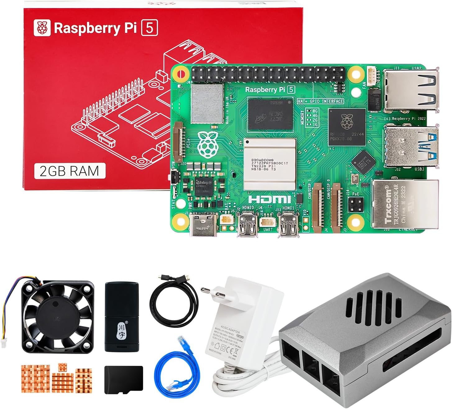 Yahboom Raspberry Pi 5 2GB Development Kit + PD Power Adapter+ABS Case+ Heat Sink + 64GB TF Card Cortex-A76 CPU for AI Programming Python (2GB-Classic Basic Kit) | قیمت یورویی 158€