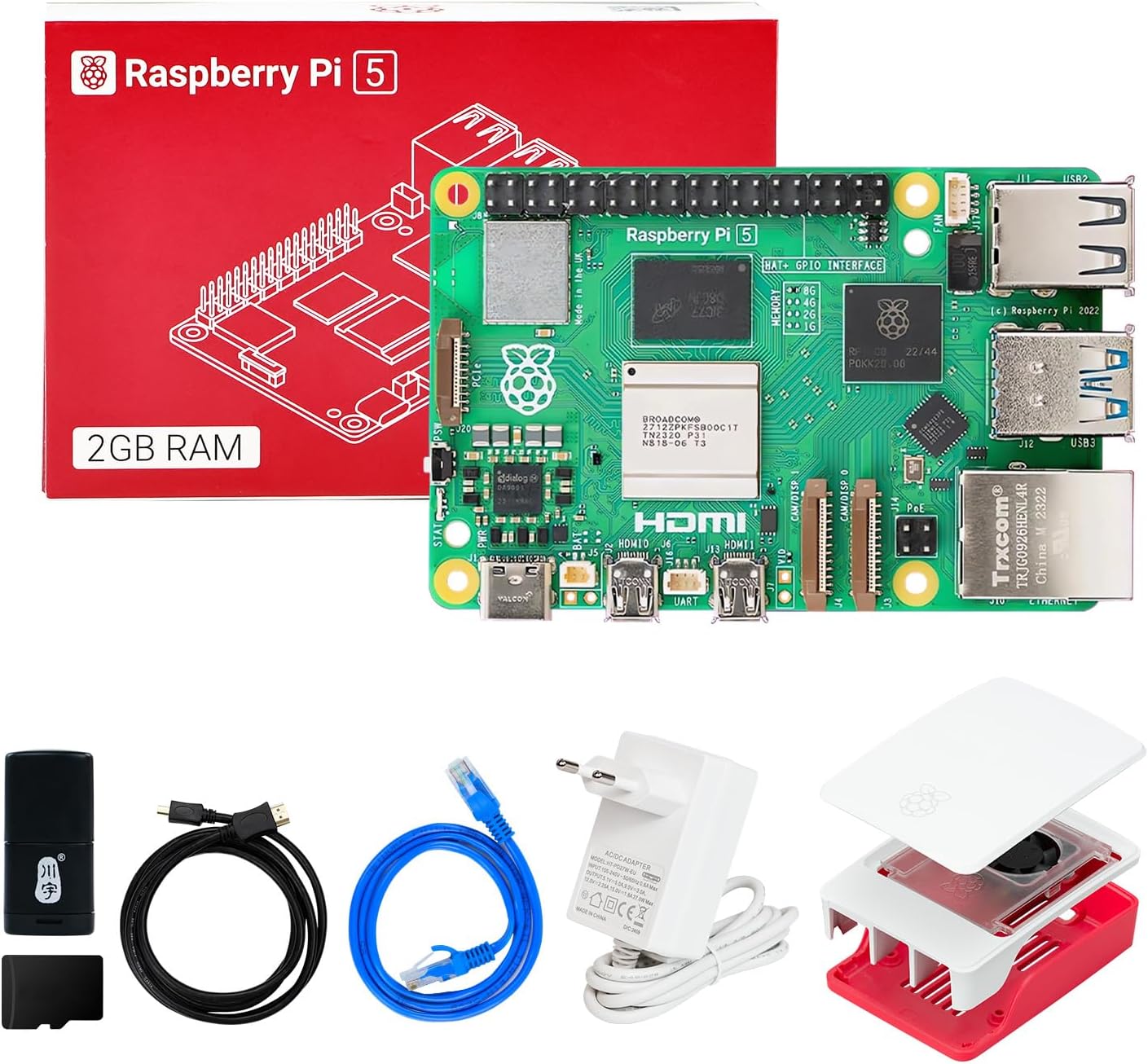 Yahboom Raspberry Pi 5 2GB Development Kit, Pi5 case,Pi5 Official Power Adapter Cortex-A76 CPU Suitable for AI Robot Programming (2GB-Official Case Kit) | قیمت یورویی 167€