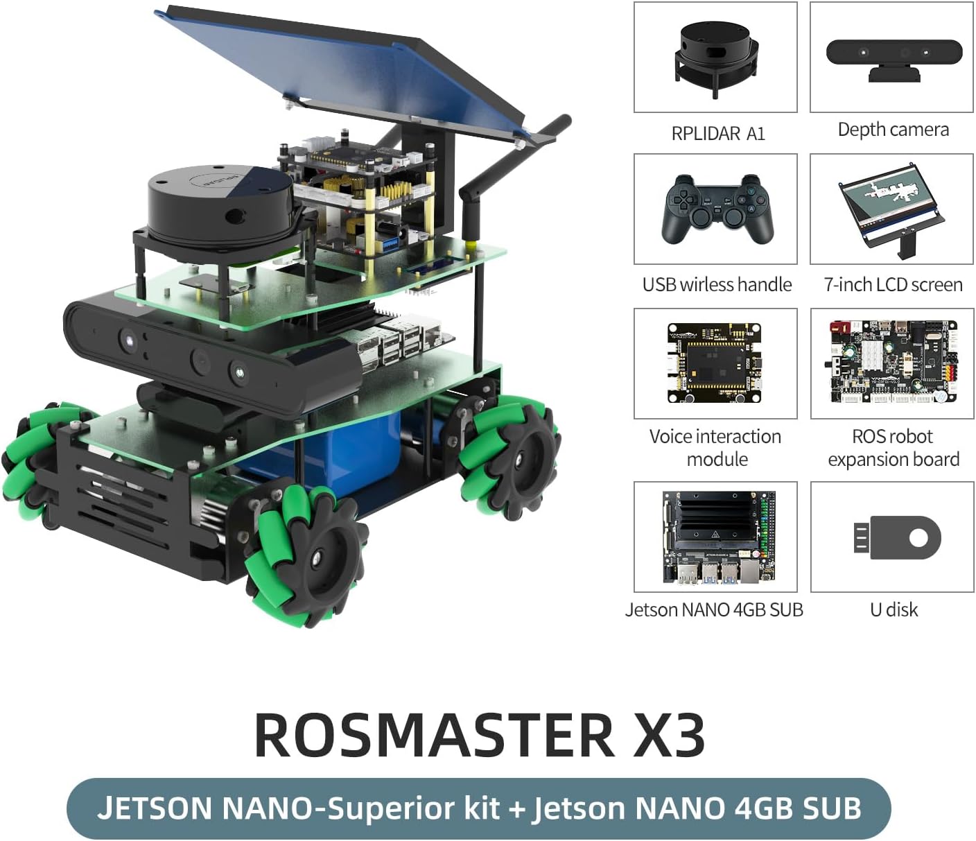 Yahboom DIY Programmable AI Robot Kit, Based on Jetson Nano Jetson Orin Raspberry Pi, for Adults,Teenagers, College Students| Face Recognition Autonomous Ubuntu (Nano Superior Ver-with Nano SUB) Eu Nano Sup Ver-with Nano 4gb Sub | قیمت یورویی 910€