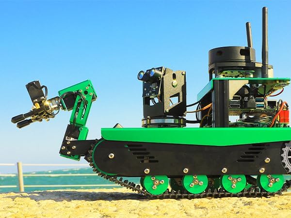 【Based on ROS Programmable Intelligent Educational Robot Set】Transbot uses the Rviz, Movelt and Qt toolboxes in the robot operating system to realize the joint control of the robot arm. Start the journey of learning ROS programming with Transbot. (★Note: Carefully check the version you ordered) 【Lidar Scanning 2D Mapping Navigation】Crawler robot kit is equipped with Silan A1 lidar, which can complete indoor 2D flight scanning and mapping, realize single point and multi-point navigation and obstacle avoidance and following. (★Note: ROS robot app does not support iOS, you can create map navigation on PC) 【AI function combination】The robot integrates a wealth of AI functions, such as fixed-point navigation, automatic driving, color recognition and tracking, AR tag recognition and reality enhancement, visual image beautification, face recognition, 3-DOF flexible grasping Manipulator, lidar mapping navigation and obstacle avoidance, you get the open source code. to realize more possibilities. Furnishing. 【Cross-platform connection control】Robot can be programmed or controlled in 4 ways, ① Mobile remote control APP integrated with a variety of AI functions, ② Handle control, which can experience the FPV real-time visual effects, ③ JupyterLab online programming and ④ Professional robot Operating system control, a variety of control methods to meet different occasions, in-depth experience of the fun of robot controls. (★Note: Yahboom App Supports iOS and Android, ROS Robot App only for Android) 【Professional Hardware & Courses】Transbot has a highly equipped aluminum alloy frame, anti-jam bearing, SLAM lidar, encoder gear motor, metal servo, Yaboom professional robot expansion board, HD camera with electric rotary pan tilt (optional) and quick release -Manipulator (optional), which makes the robot have strong ability to cross obstacles. 【Courses and Help】At the same time, Yahboom offers 64 video tutorials and detailed documentation. As long as you love ROS, this is a robot not to be missed. It's a professional gift that makers and programmers dream of. Yahboom offers professional technical assistance. If you have any doubts about robotics, I hope you can leave your questions on the page or contact our technical support 【Version Difference】Transbot has a total of 25 versions, I to V distinguishes between high-definition camera or depth camera, whether it contains a robot arm, whether it contains a 7-inch screen; In addition, the Transbot main control board is divided into Jetson Nano or Raspberry Pi, and the Raspberry Pi is divided into 4B 4G or 4B 8G, please check the version you need | قیمت یورویی : 965€