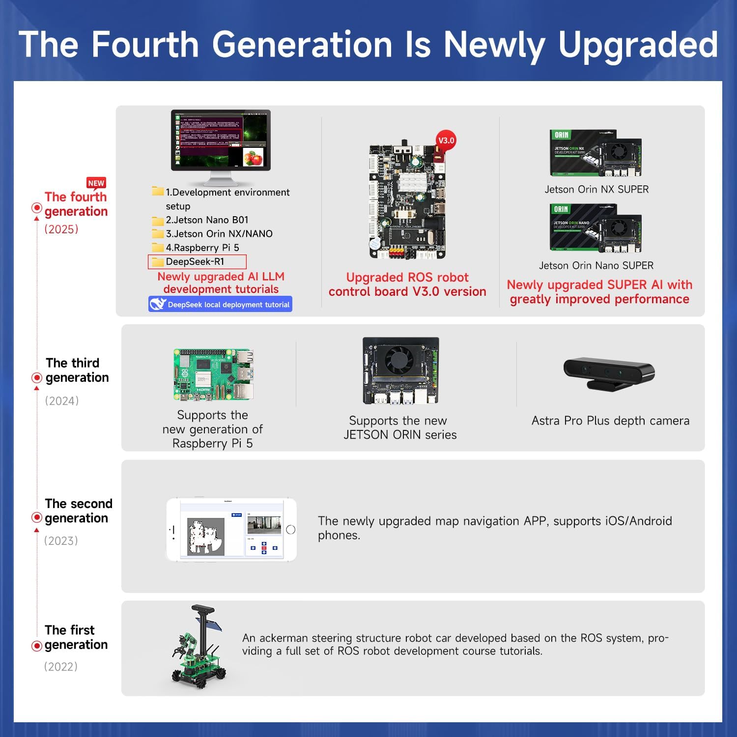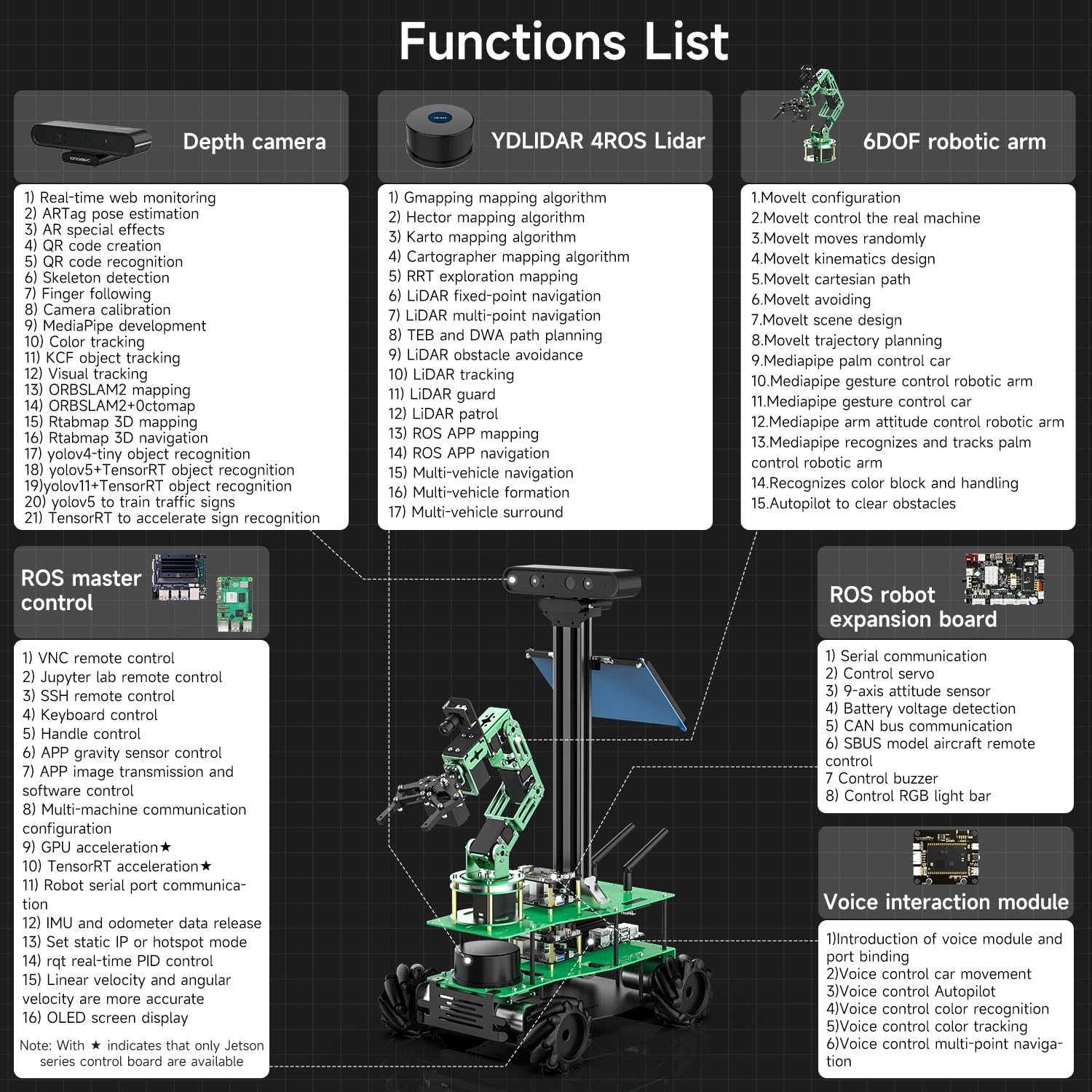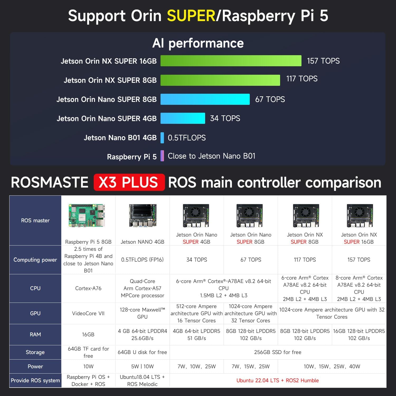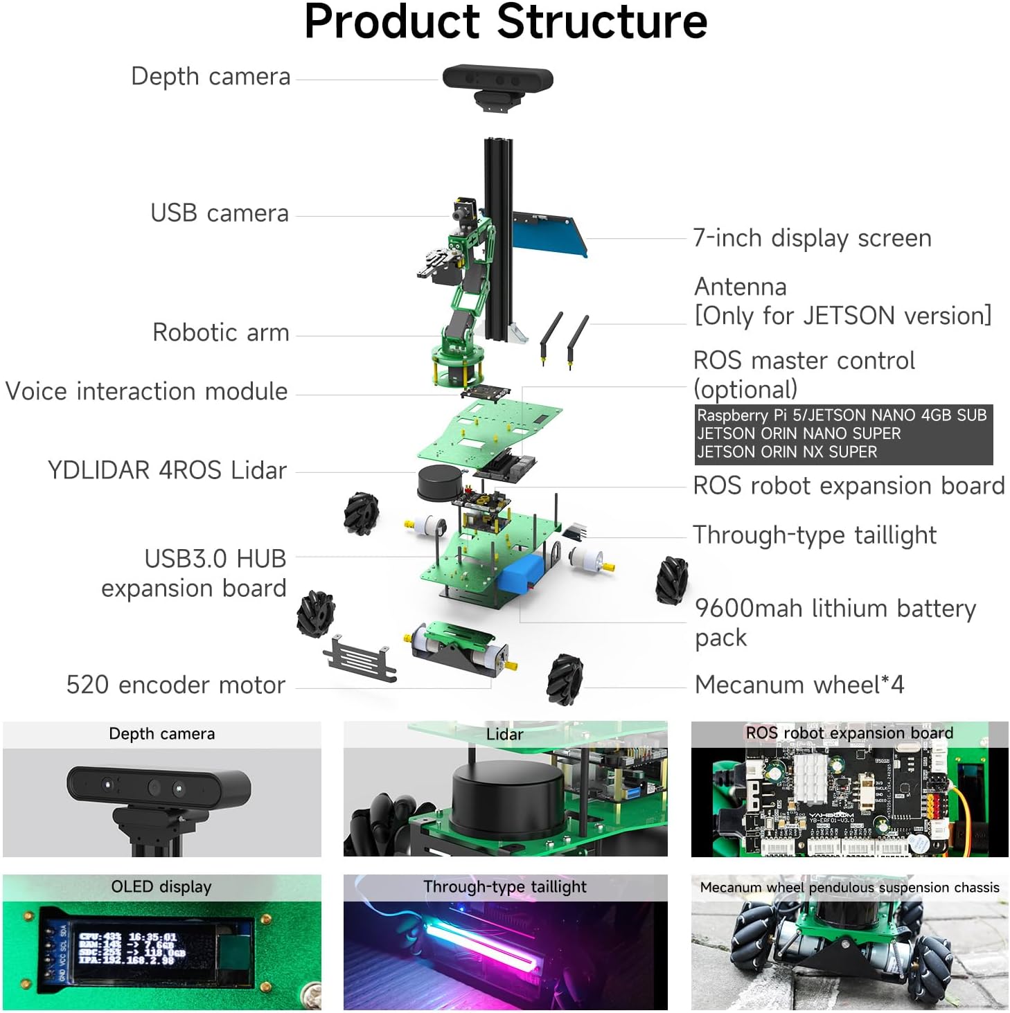 Jetson Orin NX SUPER 16GB Robot Kit 6DOF Robot Arm, ROS Program, Remote Control, 3D Mapping Navigation, Ubuntu AI Programming, Voice Recognition Interaction(X3 Plus with Orin NX SUPER 16GB) | قیمت یورویی 2205€