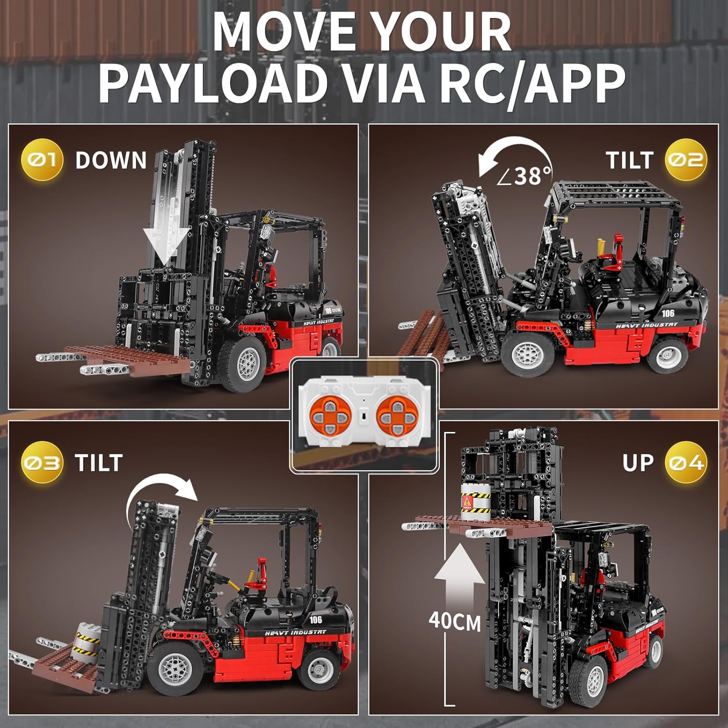 Mould King 13106 Technik MK II Gabelstapler-Bausatz zum Bauen, (1719 Teile mit Motor/APP-Fernbedienung) Technologie Klemmbausteine Bausatz | قیمت یورویی 125€