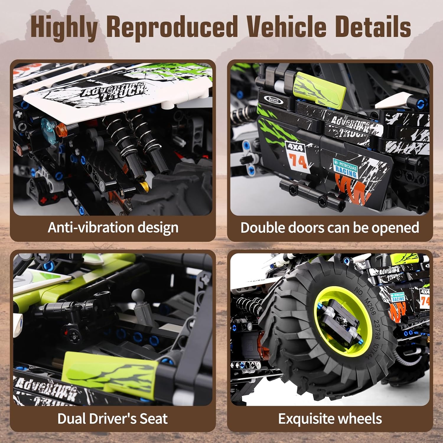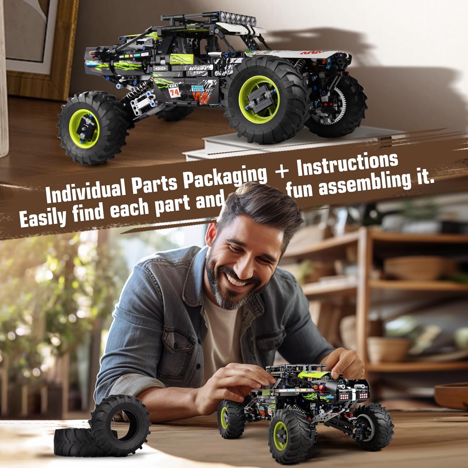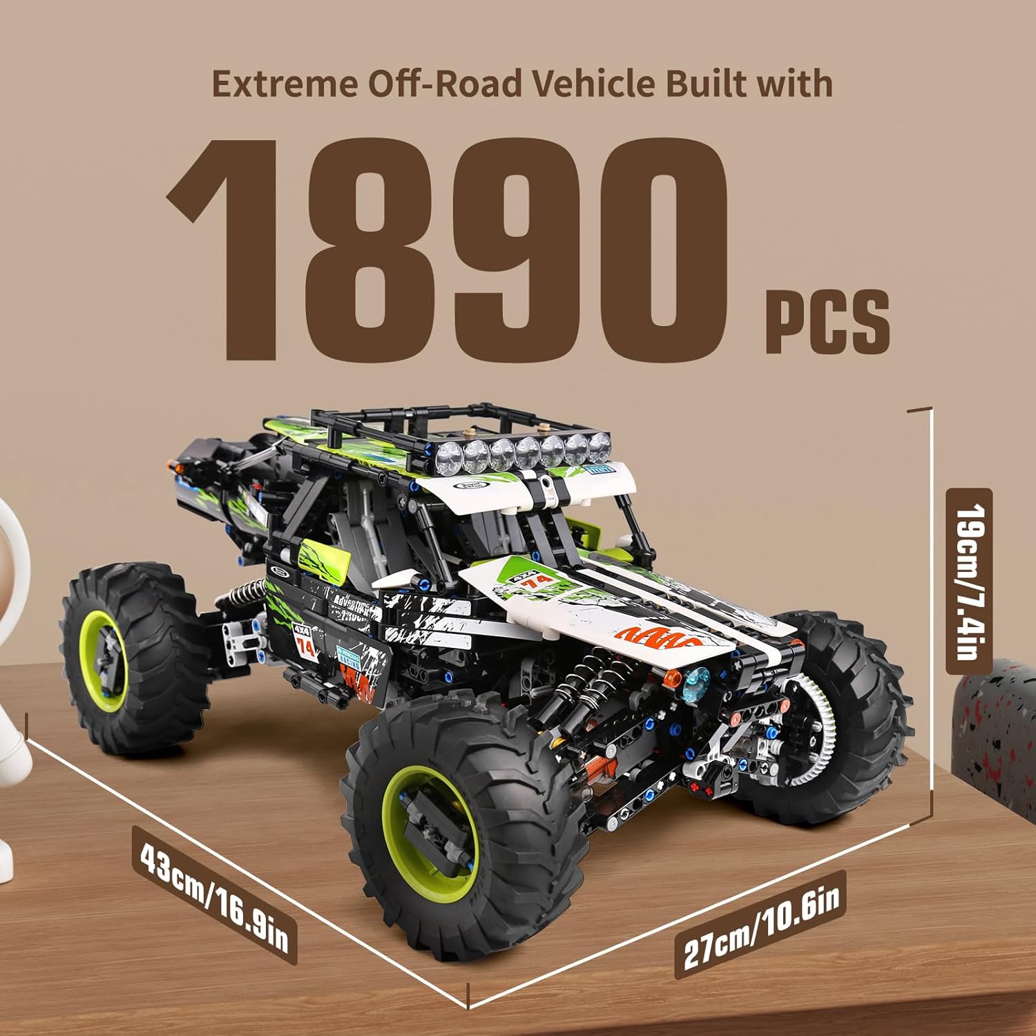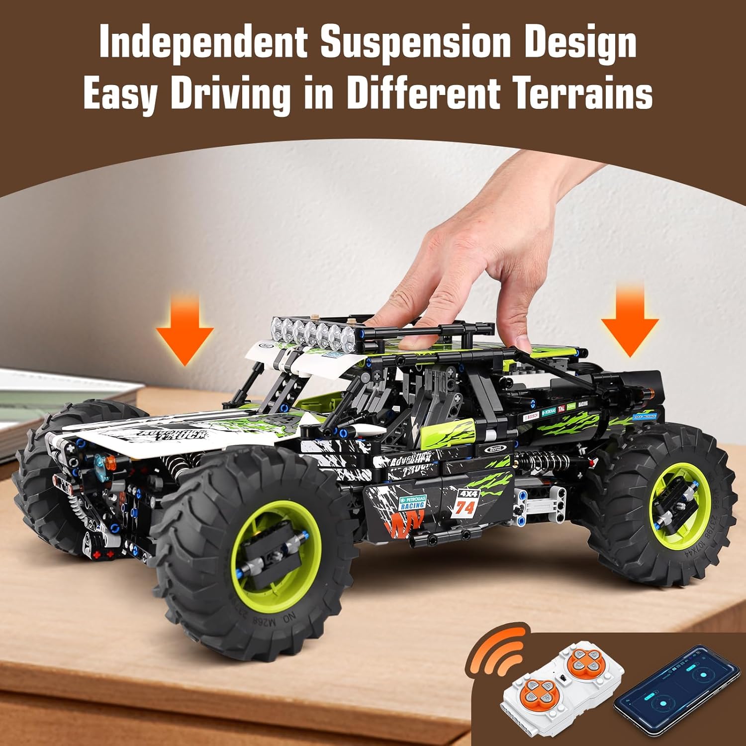کیت ساختمانی مدل خودروی آفرود تکنیک Mold King 18002، خودروی شاسی بلند با کنترل از راه دور 2.4G و برنامه کنترل دوگانه، مجموعه بلوک های ساختمانی خودروهای خارج از جاده Extreme Series 4x4 Technic (1890 PCS)