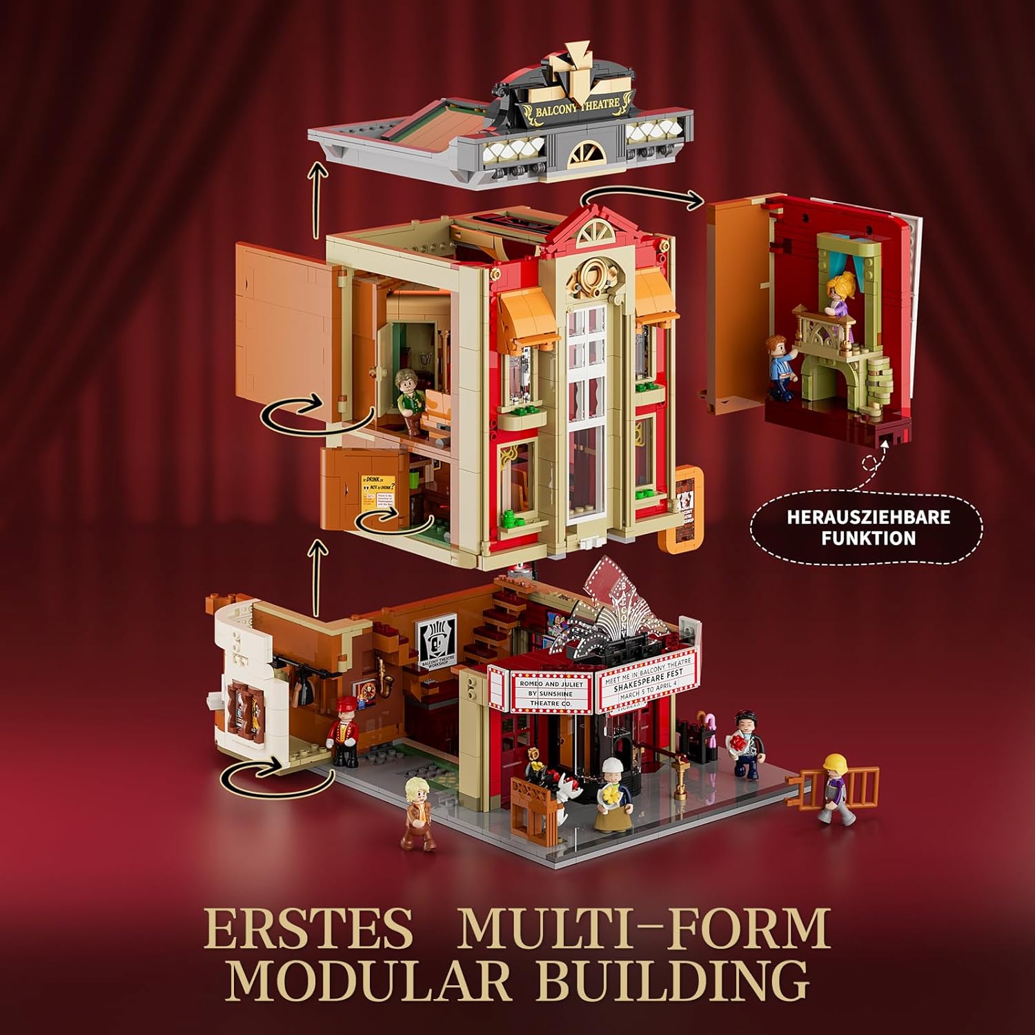 FUNWHOLE Balkon-Theater Bausatz mit Beleuchtung ,Muttertagsgeschenk& Kreatives Stadt-Haus-Modell, Modularer Baukasten, Sammler-Set, 2445 Teile für Erwachsene und Jugendliche | قیمت یورویی 189.99€