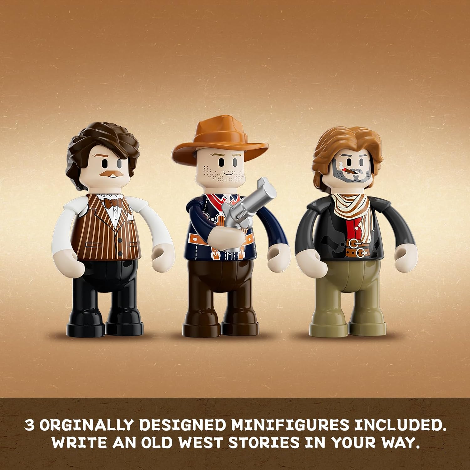 FUNWHOLE Western Saloon Baukasten – 2016 Teile Leuchtendes Modellset für Erwachsene – 3 Minifiguren + Dynamische Beleuchtung – Der Wilde Westen | قیمت یورویی 119.99€