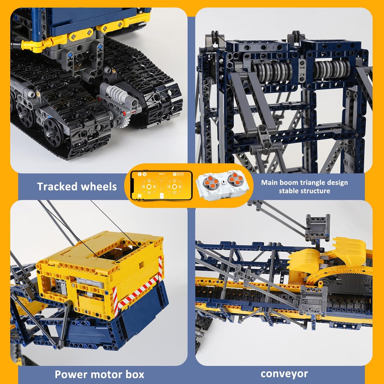 Technik Bagger mit Motor - Dieser Bausatz für Schaufelradbagger besteht aus 4588 Bausteinen und verfügt über eine farbenfrohe Papieranleitung, die Ihnen den Zusammenbau erleichtert. Es ist nach gängigen Standards konzipiert und kann mit den Spielzeugen Ihrer vorhandenen Marke kompatibel sein. Realistische Funktionen - Das Bergbaubaggerspielzeug enthält viele realistische Details und Funktionen. Mit der mobilen App können Sie alles steuern. Wie etwa Front- und Heckantrieb, drehbares Schaufelrad, bewegliche Förderbänder und drehbarer Oberwagen, sowie ein funktionsfähiger Schaufelradausleger. Fernbedienung/App-Steuerung - Der Baggerbaustein von MOULD KING verfügt über einen Hochleistungsmotor, der viel Leistung liefert, und einen wiederaufladbaren Lithium-Ionen-Akku, der für die längste Laufzeit sorgt. Dieses Bagger-Konstruktionsspielzeug ist mit Hochleistungsmotoren und Smartchips ausgestattet und unterstützt zwei Bluetooth-Fernbedienungsbetriebsarten: Handfernbedienung und Handy-App. Hochwertiges ABS-Material - Die Baggerbausätze von Mould King bestehen aus ABS-Materialien und werden einer Qualitätskontrolle unterzogen, um die Einhaltung der zu gewährleisten. Sie können es vertrauensvoll und sicher zusammenbauen. Alle Teile lassen sich leicht zusammenbauen und fallen nicht auseinander. Perfekte Geschenkidee - Perfekt für Erwachsene und Jungen und Mädchen als tolles Geschenk zu Weihnachten, Neujahr, Weihnachten, Geburtstag, Sommercamp, Ostern, Kindertag, MINT. Da der Produktverpackungsprozess vollautomatisch abläuft, benachrichtigen Sie uns bitte so schnell wie möglich, wenn Sie während des Montagevorgangs fehlende Teile feststellen, und wir werden die Teile erneut für Sie bereitstellen. | قیمت یورویی : 249.99€