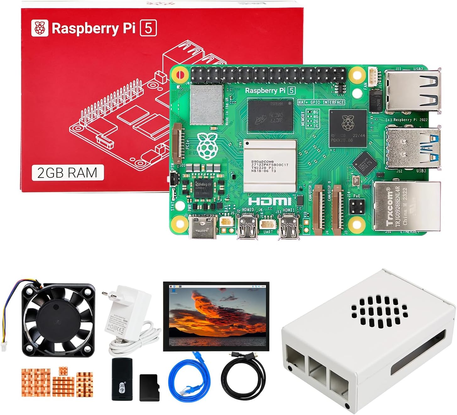 Yahboom Raspberry Pi 5 Starter Kit 2GB+HD 10.1inch Display,Case,27W PD Power Adapter,Heat Sink Ubuntu20.04 ROS2 System Suitable for Robot AI (2GB-10 in Screen Kit) | قیمت یورویی 304€