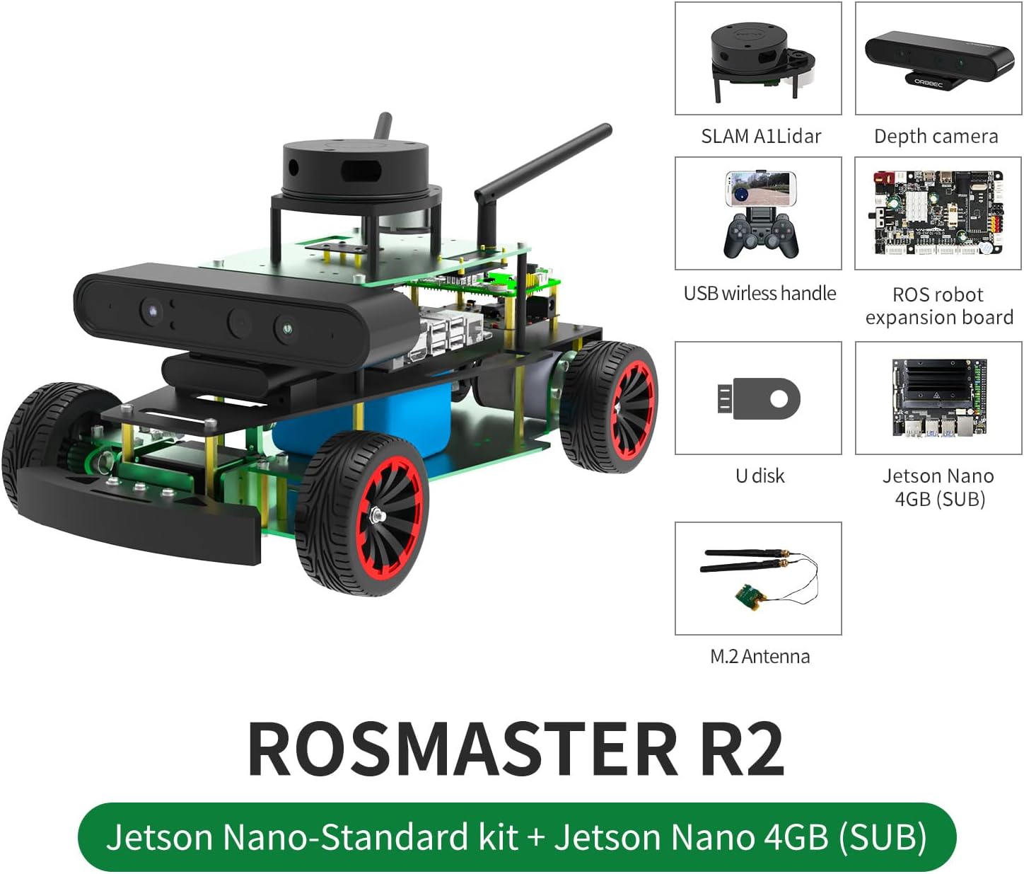 Jetson Orin Nano Raspberry Pi AI Smart Robotic Car Kit ROS2 Adulti Riconoscimento Vocale Conversazione, Pilota Automatico, Riconoscimento AI (R2 Sta Ver with Nano) | قیمت یورویی 779€