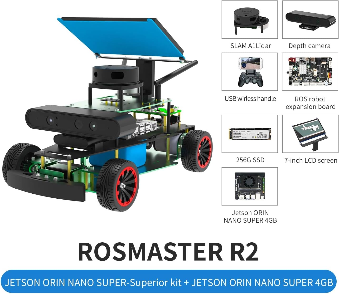 Jetson Orin Nano Raspberry Pi AI Smart Robotic Car Kit ROS2 Adulti Riconoscimento Vocale Conversazione, Pilota Automatico, Riconoscimento AI (R2 Sup Ver with Orin Nano 4GB) | قیمت یورویی 1169€