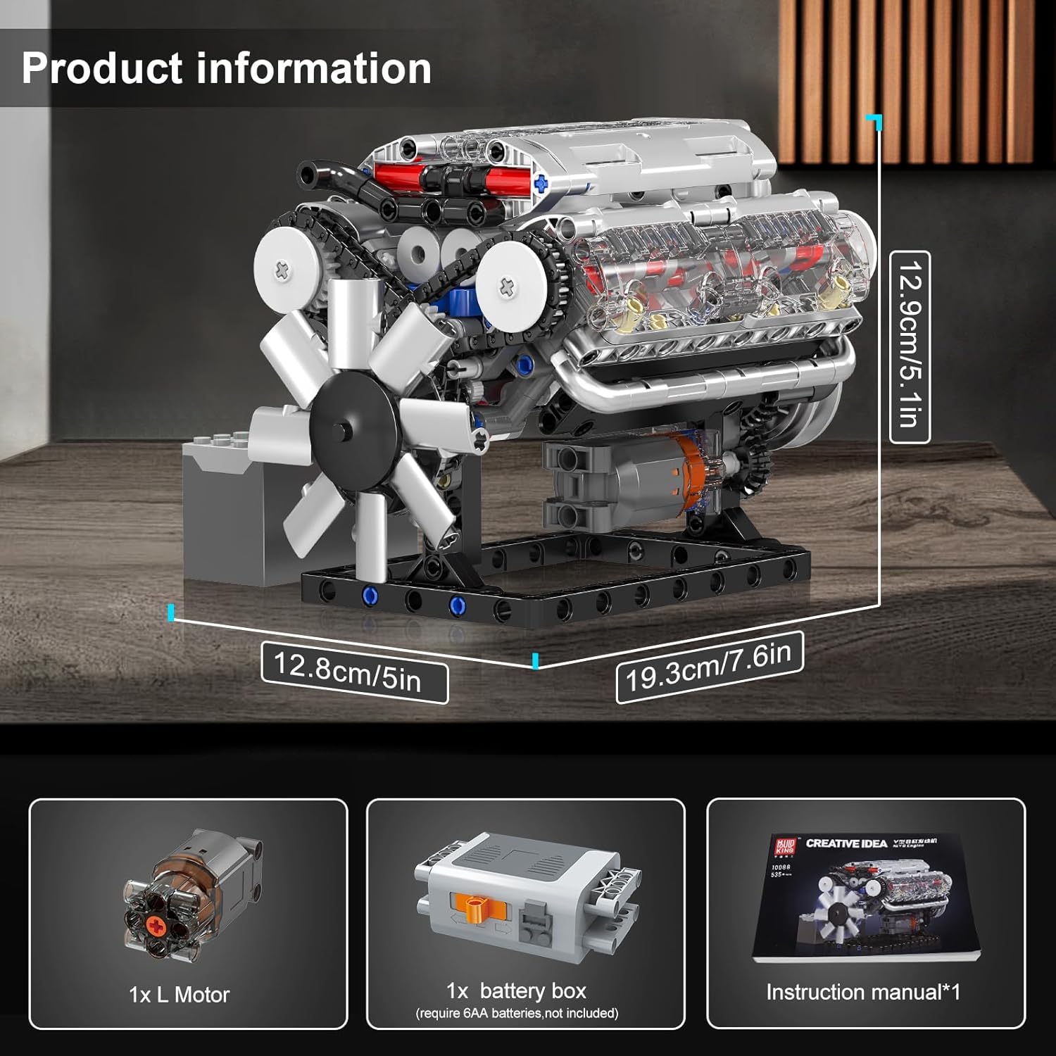 【V-8-Motor Bausteine】 : Größe: 19.3 × 12.8 × 12.9 cm, die V8 Boxermotors klemmbausteine enthalten 535 kleine quadrate. Während des montageprozesses trainieren die V8 motor modell bausteine räumliche denkfähigkeiten, verbessern die ausdauer, erhöhen die konzentration und regen phantasie und kreativität an. 【Hochgradig reproduzierbare Produktdetails】 Es kann elektrisch angetrieben werden, Reproduziert die Prinzipien der realen Dynamik; Präzise Kolbenbewegung, Detaillierter Turbolader und feine Auspuffanlage; Das transparente Zylinderkopfdesign zeigt die Synergie der internen Mechanik und des einzigartigen Ventiltriebs. 【Simulation Motor】: Der V8 Motor bausteine kann vom Motor angetrieben werden, er ist realistischer und interessanter. Sie können den laufenden Prozess des Motors während des gesamten Prozesses beobachten. Es ist nicht nur ein exquisites Dekorationsmodell, sondern auch ein dynamisches Simulationsmodell, das den Betrieb eines realen Motors simulieren kann. 【Tolle Spielzeugkideen】 Technik Motor Bausteine Kit geeignet auch für Jungen und Mädchen ab 14 Jahren. Wenn Sie ein cooles Spielzeug für Ihre Kinder suchen. Wie Geburtstag / Kindertag / Weihnachten / Neujahr / Ostern / Sommercamp / Schulanfang Spielzeug usw.. Dieses Modellbausteine ist eine gute Wahl. 【Kundenservice】 Engine Spielzeug Bausatz Modell besteht aus hochwertigen und hochpräzisen Material. Wenn Sie Probleme bei der Installation oder Verwendung des Produkts haben, können Sie gerne uns kontaktieren bitte. | قیمت یورویی : 35.69€