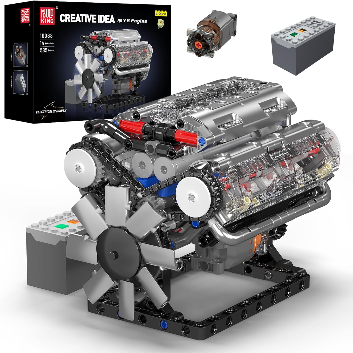 Mould King 10088 Technik V8 Motor Bausatz Bausteine Engine Modell Klemmbausteine Simulation Motor mit Funktionsfähiges Engine kit (535 Teile) | قیمت یورویی 35.69€