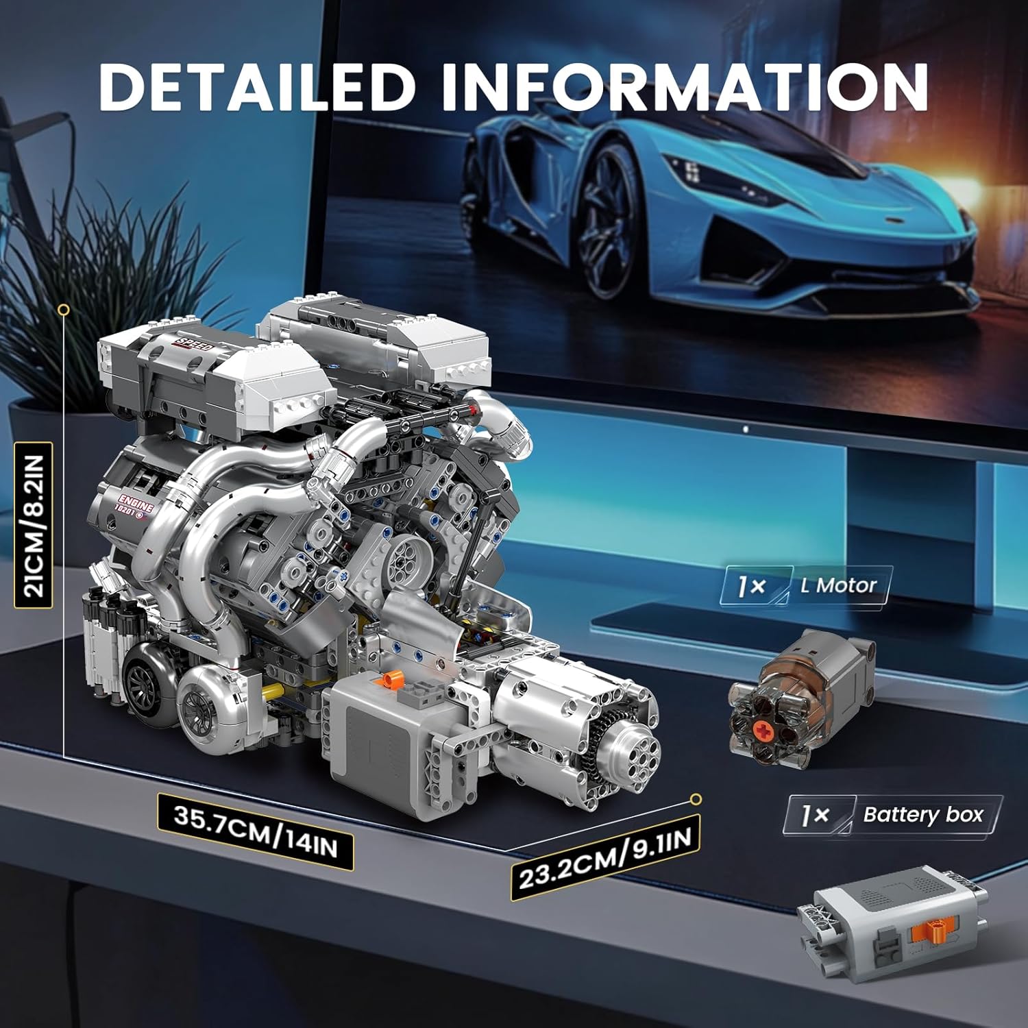 Mould King W16-Motor, 1:1 maßstabsgetreue Nachbildung der inneren Struktur des W16 Motors und Getriebes, die die dynamische Zusammenarbeit von Kolben, Kurbelwelle und Zahnrädern zeigt. Ausgestattet mit einem L-förmigen Motor und einer 9V-Batteriebox, ermöglicht das kompakte Design eine hohe Leistungsabgabe auf begrenztem Raum. 【Automodellbausatz-Spielzeug für Kinder und Erwachsene】 Dieser Bausatz ist ein tolles Spielzeug für Jungen und Mädchen zum Valentinstag/Geburtstag/Vatertag, insbesondere für Kinder, Jugendliche, Erwachsene ab 8, 9, 10, 12, 14 Jahren und älter. Speziell für Truck-Fans und -Liebhaber. Mould King 10201 Technik V8-Zylinder-Reihenbenzinmotor modell ist mit nummerierten Baubeuteln und einer Schritt-für-Schritt-Anleitung ausgestattet. Sie können dieses Set ganz einfach zusammenbauen, indem Sie der klaren Anleitung folgen. Während des Baus dieses LKW können Kinder ihr kreatives Denken fördern und ihre Fähigkeit zur Erkennung von Farbformen und zur Hand-Auge-Interaktion entwickeln. Auto Geschenk Bauklötze Bauen - Es ist eine wunderbare Aktivität zusammen mit Familie oder Freunden. Dieses Autobau-Spielzeug fördert die Hand-Augen-Koordination, das divergente Denken und die Problemlösungsfähigkeiten Ihres Kindes, inspiriert Kreativität und Gehirnentwicklung. Hilft Kindern, Zusammenarbeit und Teamarbeit zu lernen. Technik-Motor-Bausatz wird in einer farbenfrohen Geschenkverpackung geliefert und ist ein perfektes Spielzeug für Geburtstage, Kindertag, Weihnachten oder Neujahr.Das Set eignet sich hervorragend als Geschenk für Kinder, da es sowohl Spaß als auch technisches Verständnis fördert. Jedes Produkt wird vor dem Versand sorgfältig und gründlich geprüft, um sicherzustellen, dass es in einwandfreiem Zustand bei Ihnen ankommt. | قیمت یورویی : 92.65€