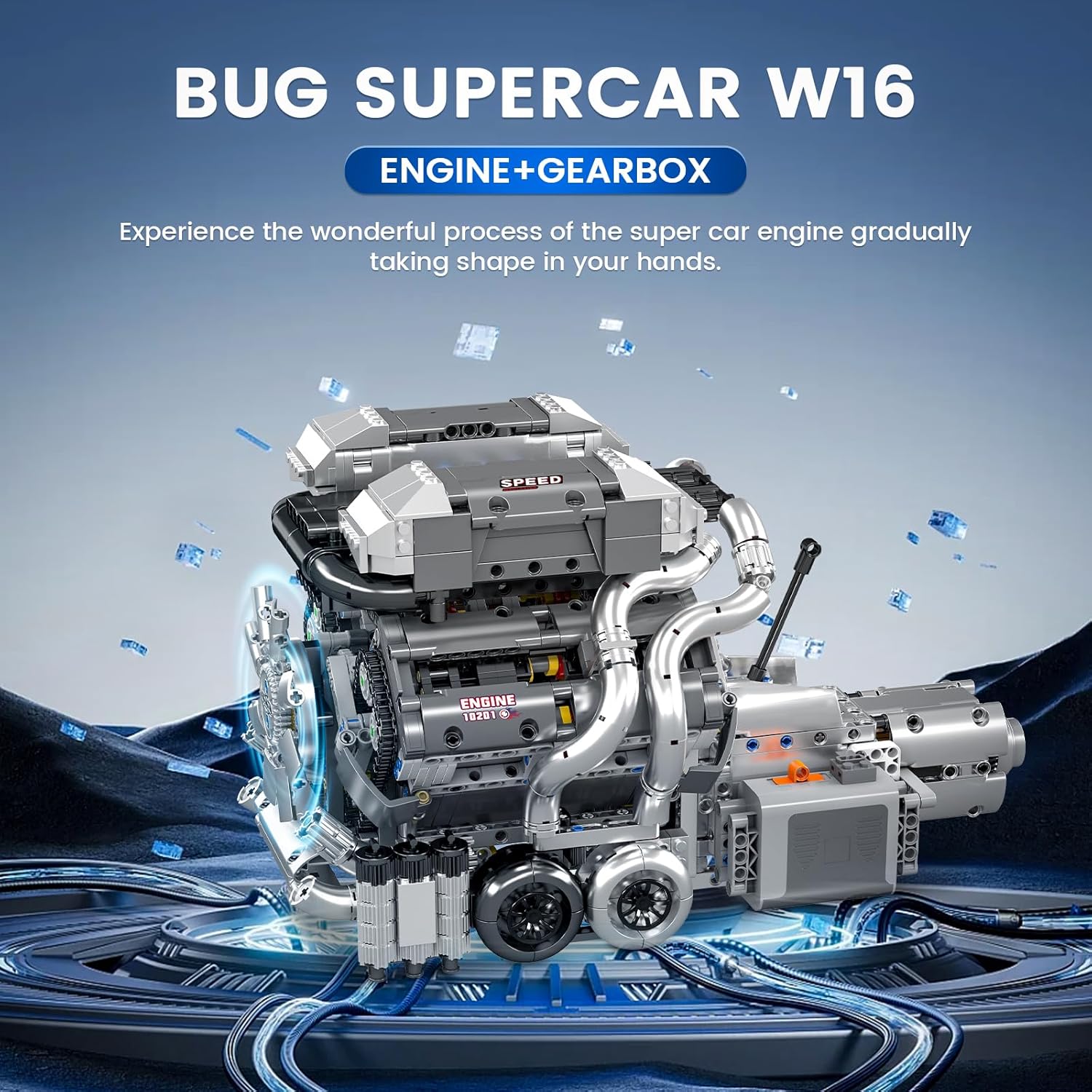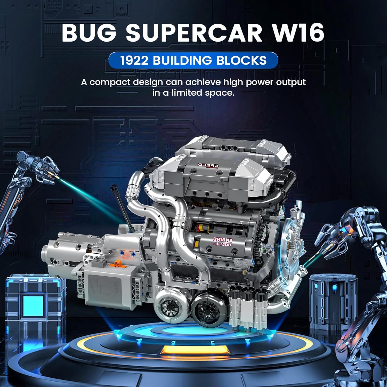 Mould King 10201 Technik W16 Motor Bausatz Bausteine Engine Motor Modell Klemmbausteine Verbrennungsmotor mit Funktionsfähiges Engine kit (2024 Teile) | قیمت یورویی 92.65€