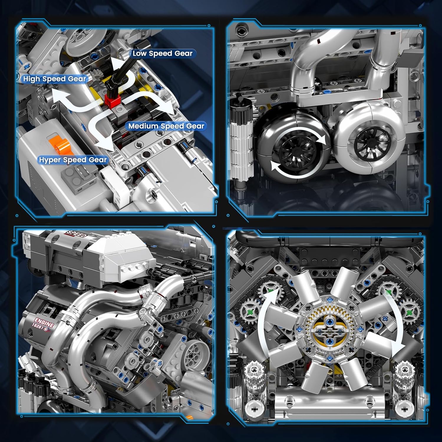 کیت موتور Mold King 10201 Technic W16 بلوک های ساختمان موتور مدل بلوک های درونی موتور احتراقی با کیت موتور عملکردی (قطعات 2024)