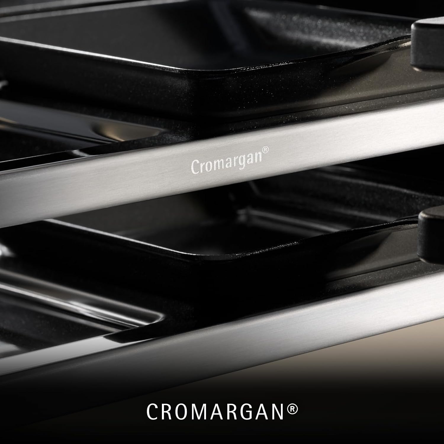 WMF Lono Selection Raclette Grill für 8 Personen, 1500 W Leistung, 8 antihaftbeschichtete Pfännchen, 8 Spatel, variable Temperaturkontrolle, Ablage unter der Grillplatte, Cromargan Edelstahl, schwarz | قیمت یورویی 169.99€