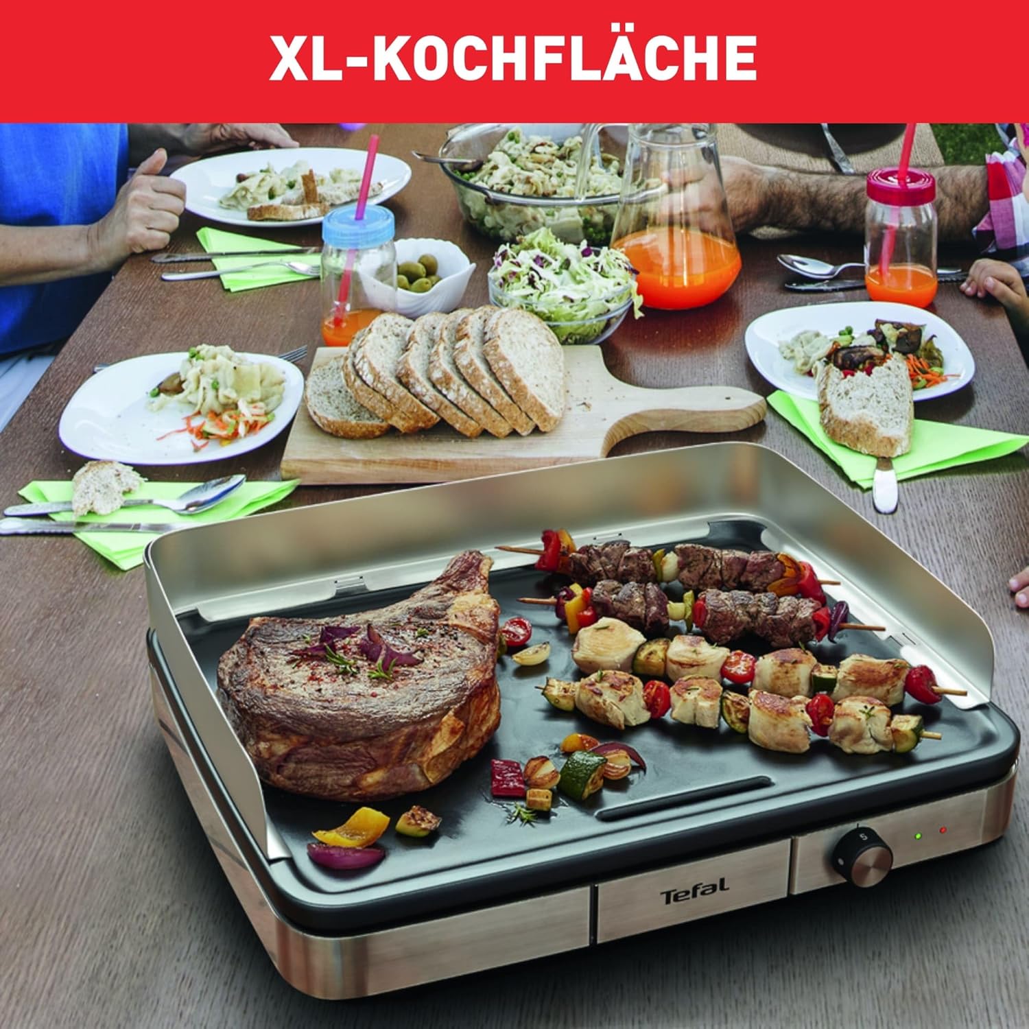Tefal Maxi Plancha Elektro-Tischgrill CB690D | Extra groß | Antihaft Teppanyaki Platte | Leichte Reinigung | Innen und außen nutzbar | Inkl. abnehmbarem Windschutz + Spatel | 2300W, Schwarz/Silber Classic | قیمت یورویی 149.53€