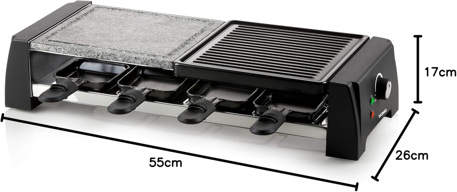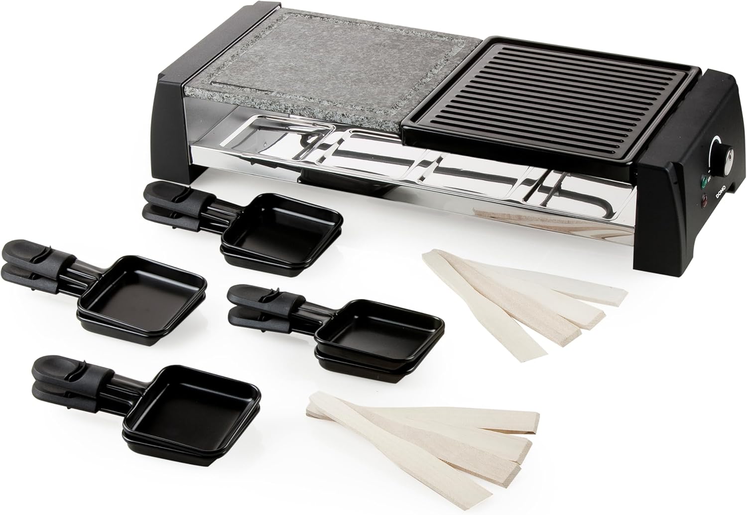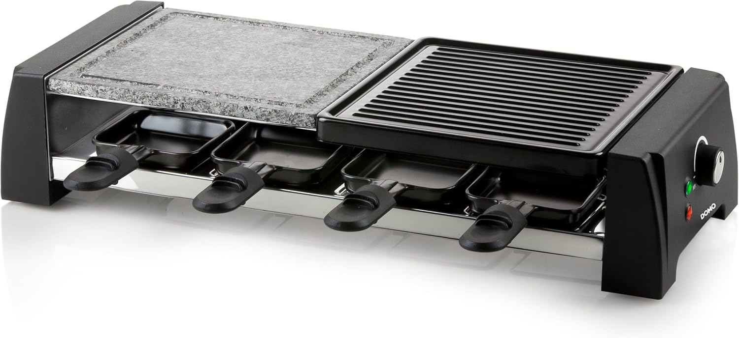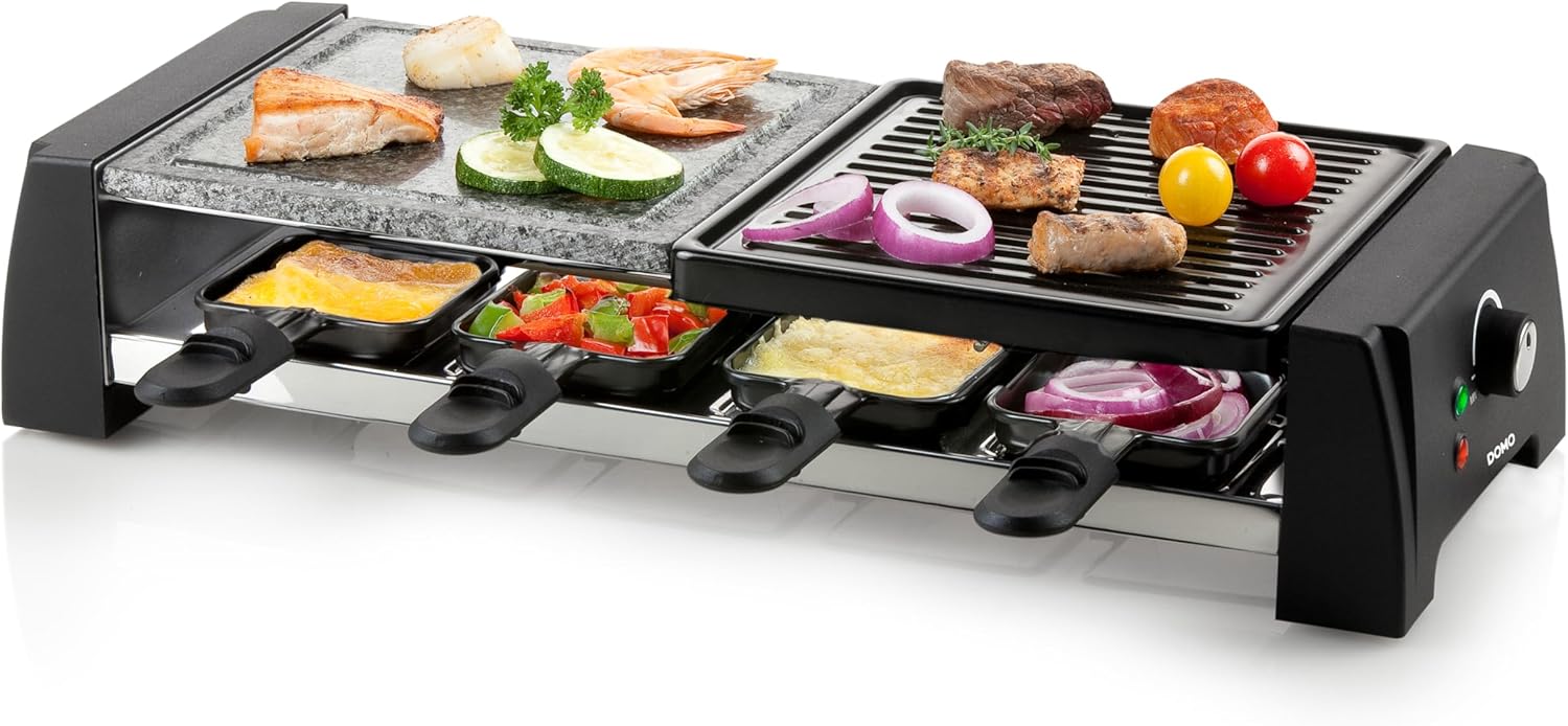 DOMO DO9190G Steingrill/Raclette-Grill - Inklusive Raclettepfännchen und Holzspatel - 8 P - 1200 W | قیمت یورویی 35.91€