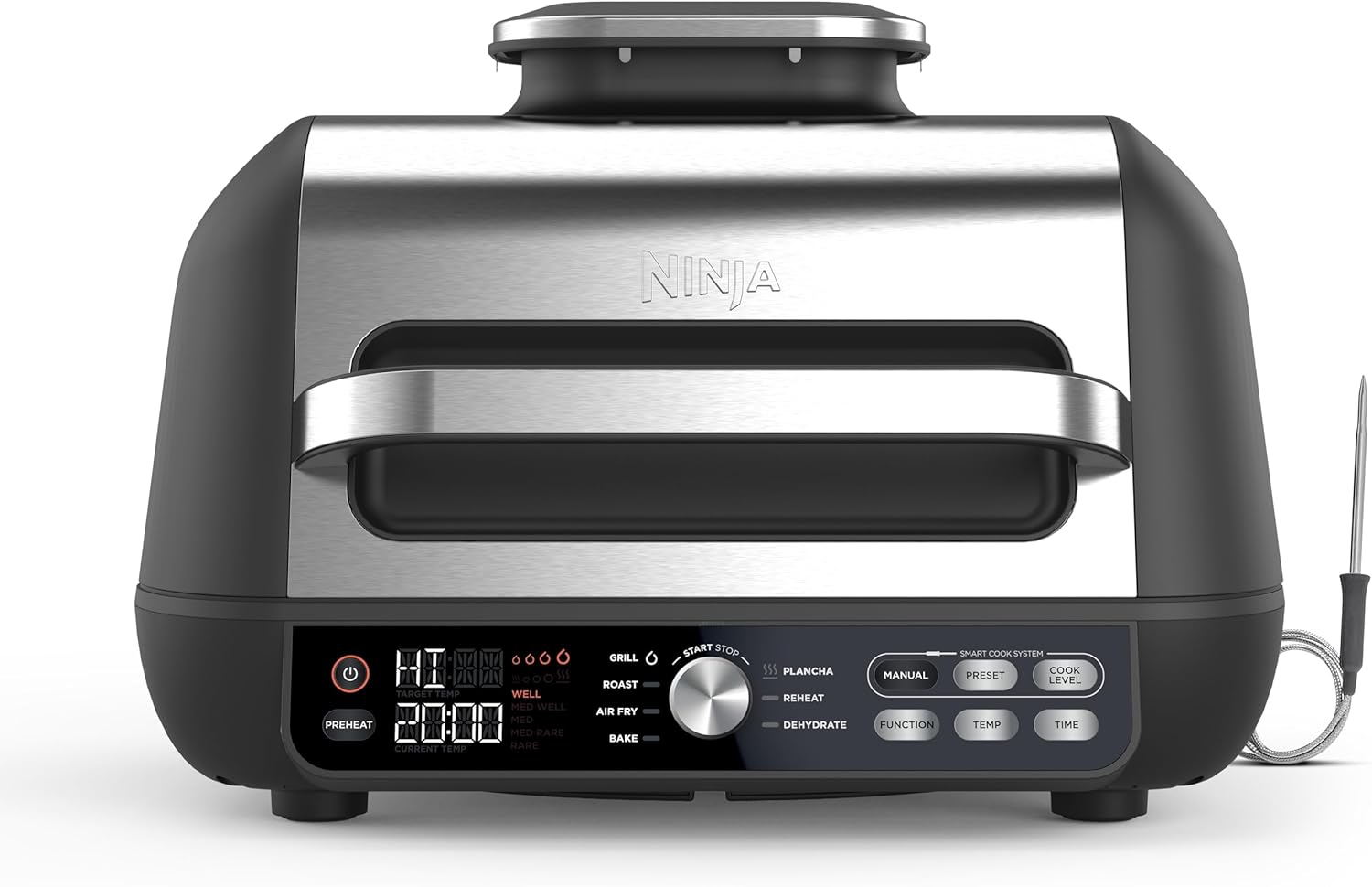 Ninja Foodi MAX PRO Grill, Plancha Flat Grill Plate & Airfryer, 3,8LHeißluftfritteuse, Air Fryer mit digitalem Temperaturfühler, spülmaschinenfeste Teile, 7-in-1, Silber/Schwarz AG651EU MAX PRO Grill & Heißluftfritteuse Schwarz/Silber Schwarz/Silber | قیمت یورویی 263.99€