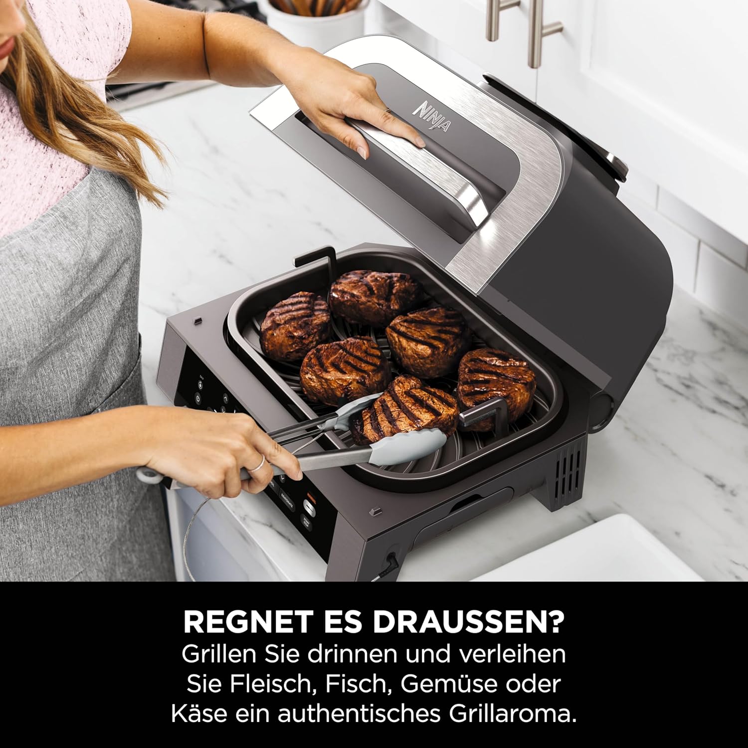Ninja MAX 6-in-1-Grill & -Heißluftfritteuse für den Innenraum, 6 Kochfunktionen, für bis zu 6 Burger, 3,8-l-Fassungsvermögen, kaum Rauch, enthält digitales Bratthermometer, Grau/Silber, DG551EU MAX 6-in-1-Grill & Heißluftfritteuse 3,8L Schwarz/Silber | قیمت یورویی 223.62€