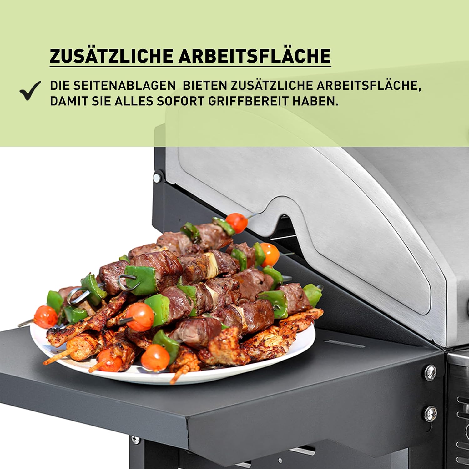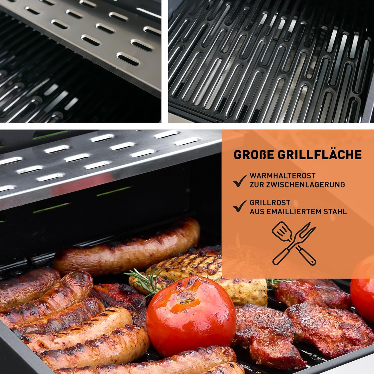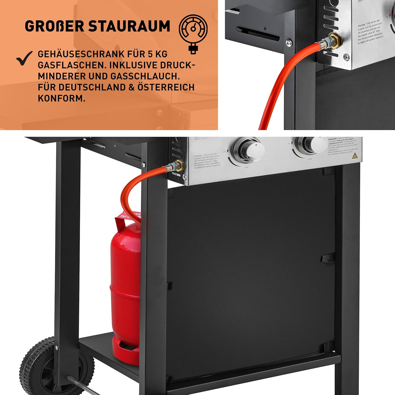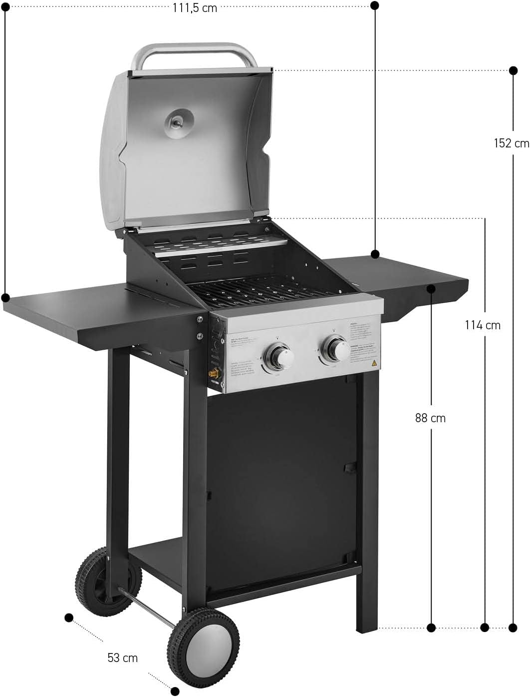 👍 GRILLVERGNÜGEN- Ob im Garten, auf der Terrasse, dem Balkon oder beim Camping-der Heinrichs BBQ Gasgrill passt perfekt in jede Umgebung und sorgt für unvergessliche Grillabende mit Familie und Freunden. ✅ KONFORM und LEISTUNGSSTARK-Die 2-Edelstahlbrenner mit 6,3 kW Leistung sorgen für kraftvolles und gleichmäßiges Grillen. Ausgestattet mit einem Gehäuseschrank für 5 Kg Gasflaschen und Gasgriller inkl. Druckminderer und Gasschlauch ist der Gasgrill für Deutschland und Österreich konform. 💪 FLEXIBEL: Die zwei 40x35 cm großen klappbaren Seitenablagen bieten einen idealen Abstellplatz für Ihre Grillspezialitäten und sorgen eingeklappt für eine platzsparende Einlagerung. Außerdem sorgen die Warmhalteroste für langanhaltende Temperaturspeicherung. 🎨SCHLANKES DESIGN - welches perfekt für ein Grillerlebnis geeignet ist und überall seinen Platz findet. Dank der stufenlosen Temperaturregelung können Sie Grillfleisch/Fisch/Grillgemüse auf dem 42,5x36cm Grillrost nach Ihrem belieben und Geschmack grillen. Die integrierte Temperaturanzeige dient für den vollen Überblick und Erzielung des individuellen Grillgenusses. 🎁Freude beim Verschenken: Überraschen Sie Ihre Liebsten mit unseren Produkten. Wir stehen Ihnen auch dort mit Rat und Tat zur Seite. | قیمت یورویی : 189.99€