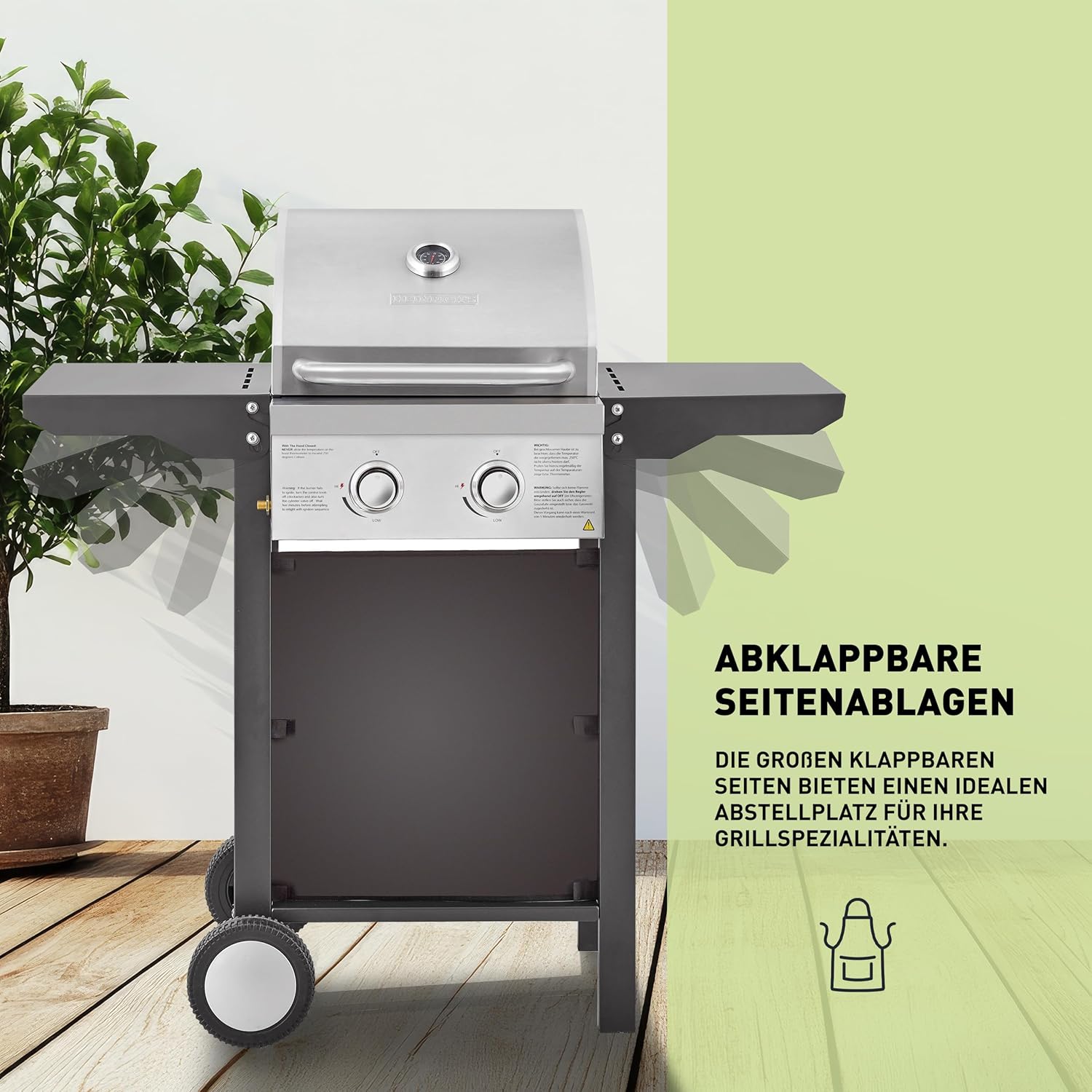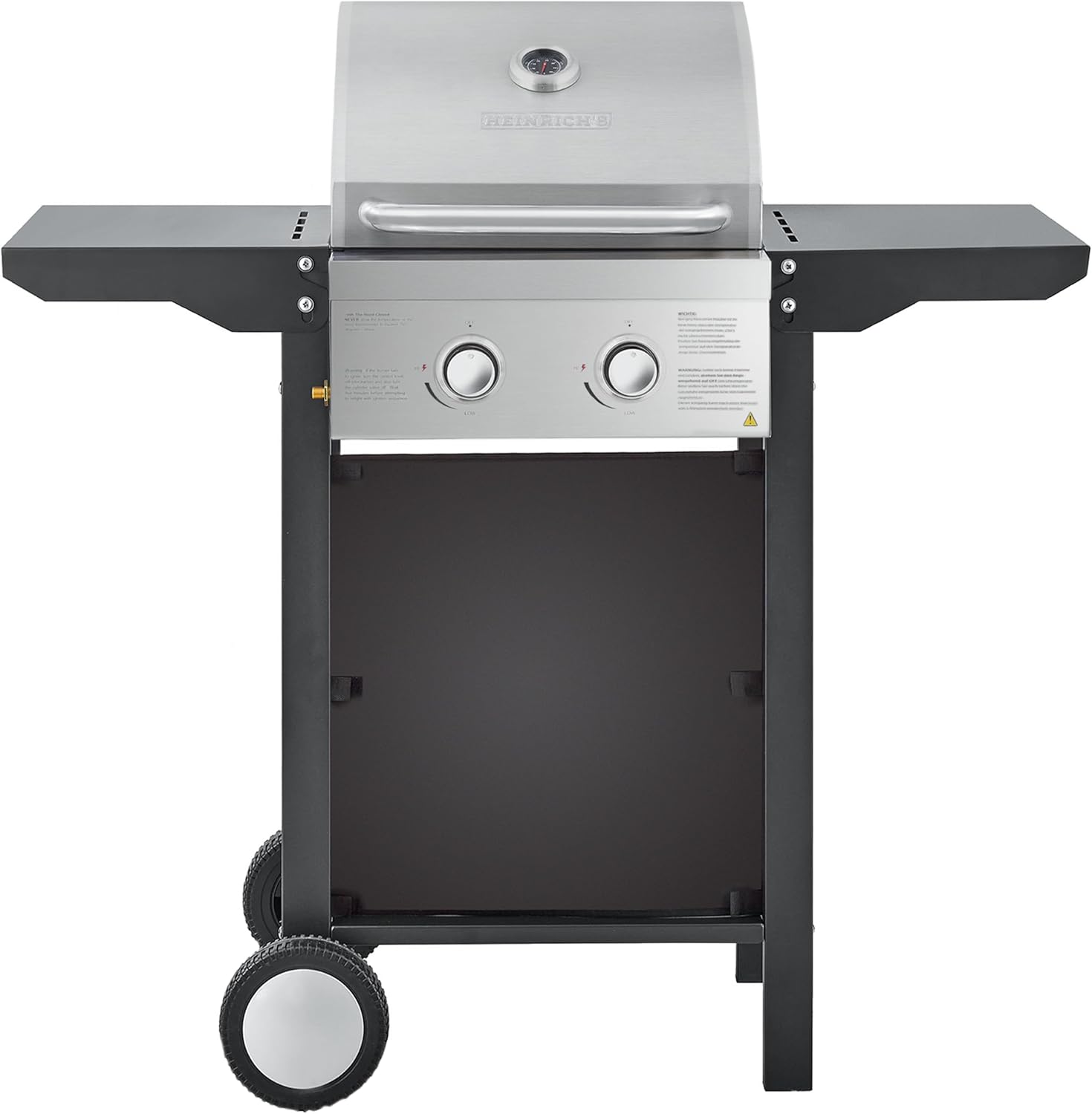 HEINRICHS Gasgrill, Grillwagen, 2Flächen Brenner aus Edelstahl, Balkon-Grill auf 2 Rädern, BBQ-Grill, Seitenablage klappbar, stufenlose Temperatursteuerung, Temperaturanzeige Heinrich´s | قیمت یورویی 189.99€