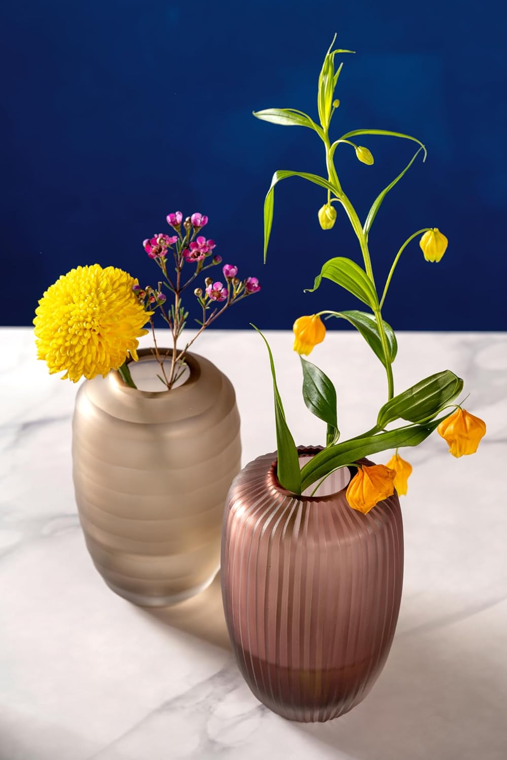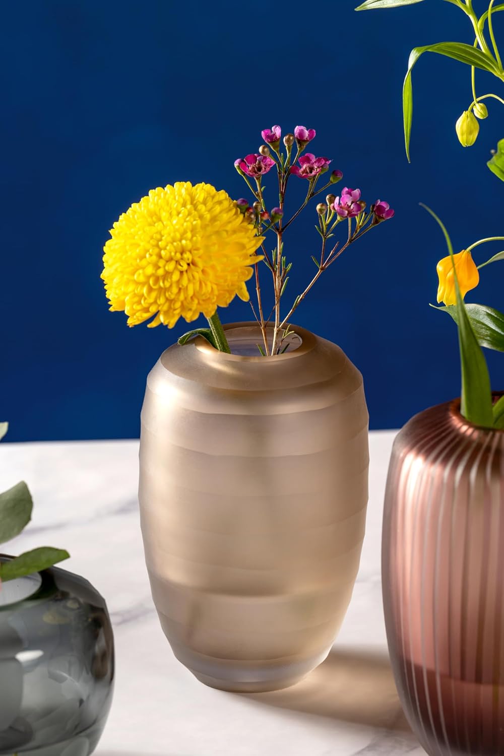 Stil: Elegante und stilvolle runde Glasvase mit einer Höhe von 16 cm und einem Durchmesser von 10 cm. Die farbige Dekovase eignet sich besonders gut für frische Blumen wie Tulpen und Rosen, kann aber auch für Trockenblumen, und Zweige verwendet werden. Material: In Handarbeit aus Kalk-Natron Glas in natürlichem Beige-Farbton gefertigt. Auf die Vase ist ein Relief mit Querstreifen aufgebracht, das dekorativ ist und eine angenehme Haptik bietet. Massiver Boden für sicheren Stand auf dem Tisch. Anwendung: Die kleine Tischvase ist perfekt für kleine und mittlere Blumensträuße, sowie andere Dekorationen geeignet. Schaffen Sie kinderleicht abwechslungsreiche Arrangements im und Tischdekorationen in Ess- und Wohnzimmer, Schlafzimmer oder Büro. Vielseitig: Die zeitlose Ästhetik der Vase passt perfekt in moderne Wohnräume und lässt sich mit jeder Art von Einrichtungsstil kombinieren. Die Serie Bellagio umfasst Blumenvasen in verschiedenen Formen und modernen Farben, die kombiniert werden können. Daten: Mittelgroße Tischvase aus hochwertigem Glas - Handgemacht, jedes Stück ein Unikat - Höhe 16 cm, Ø 10 cm - Gewicht 550 g - Farbe: beige, auch in anderen Größen erhältlich - Verpackt im bedruckten Geschenkkarton - Hergestellt in Deutschland | قیمت یورویی : 47.34€