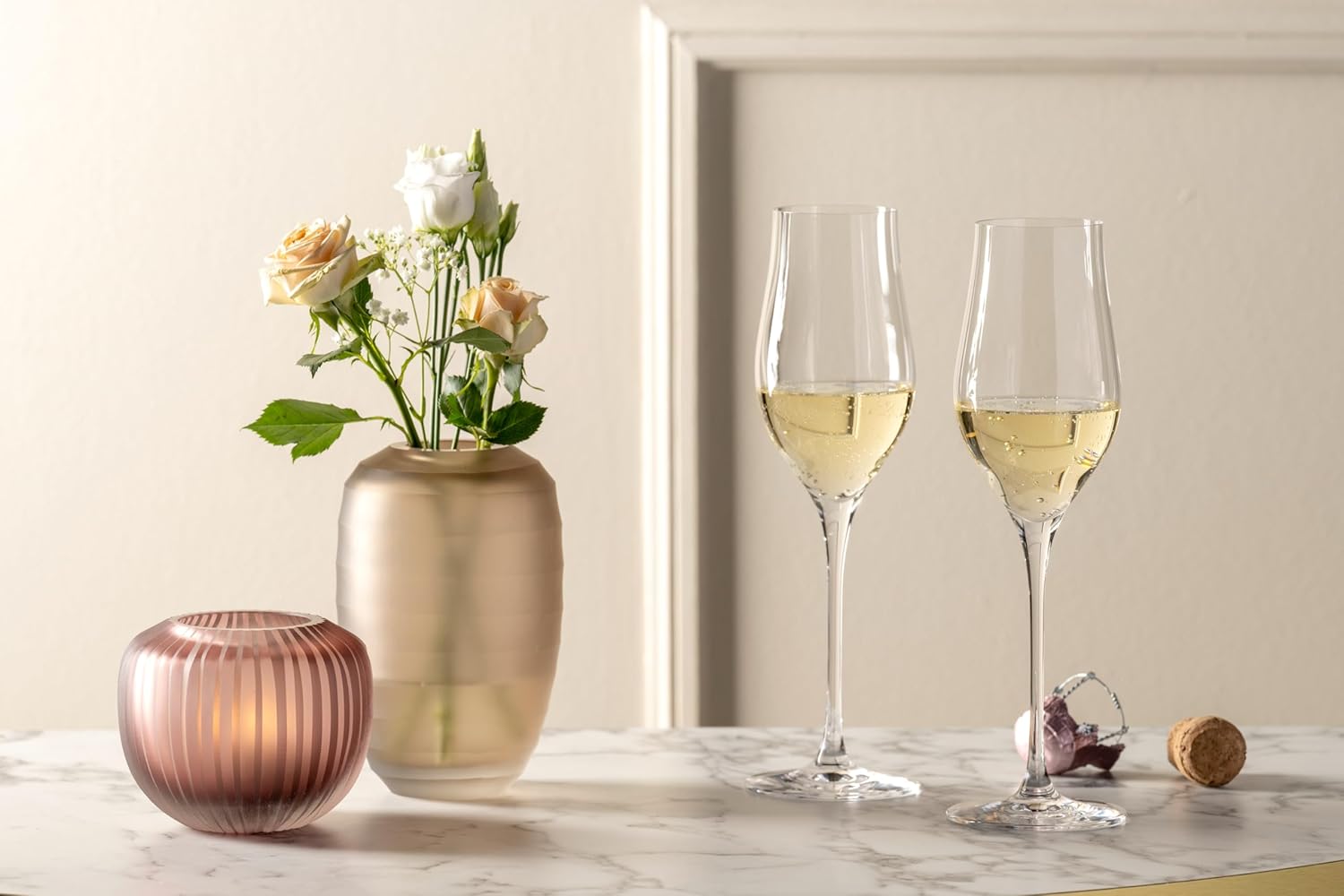 LEONARDO HOME Bellagio Dekovase - Farbige Vase aus hochwertigem Glas mit Relief außen - Handarbeit - Höhe 16 cm, Durchmesser 10 cm - Beige, 036447 Beige 16 cm | قیمت یورویی 47.34€