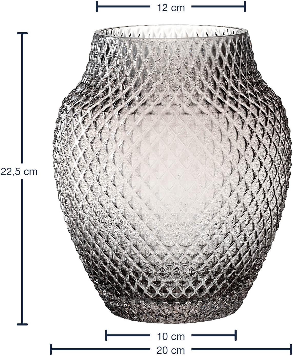 Vielseitig als Vase & Tischlicht: Dank der größeren Öffnung und bauchigen Form kann die Vase auch als Block-Kerzenhalter & Windlicht verwendet werden - Die vVase eignet sich perfekt für frische, gebundene Sträuße, Trocken-Blumen & kleinere Zweige Farbenfroh und edel: Das grau gefärbte Glas der Tisch-Deko überzeugt mit einem schönen Glanz sowie der exklusiven Relief-Optik, die tolle Lichtreflexionen auslöst Handgefertigtes Unikat: Die Vase ist ein handgemachtes, einzigartiges Produkt - Das Blumen Glas hat dank des handwerklichen Herstellungsverfahrens Unikat-Charakter - Um lange Freude an der Poesia Vase zu haben, empfiehlt sich die Reinigung per Hand Hochwertiges Design: Leonardo steht für feines & innovatives Design - Die Serie Poesia überzeugt mit einer eleganten Optik - Die Glas-Vase ist eine schöne Dekoration fürs eigene Zuhause und eine liebevolle Geschenkidee Lieferumfang & Maße: 1 graue bauchige r&e Vase, Maße: 22,5 x 19 x 19 cm (HxBxT), Durchmesser Fuß 10 cm, Durchmesser oberer Rand 12 cm, Gewicht: 1000 g, Volumen Randvoll 4 l | قیمت یورویی : 19.4€