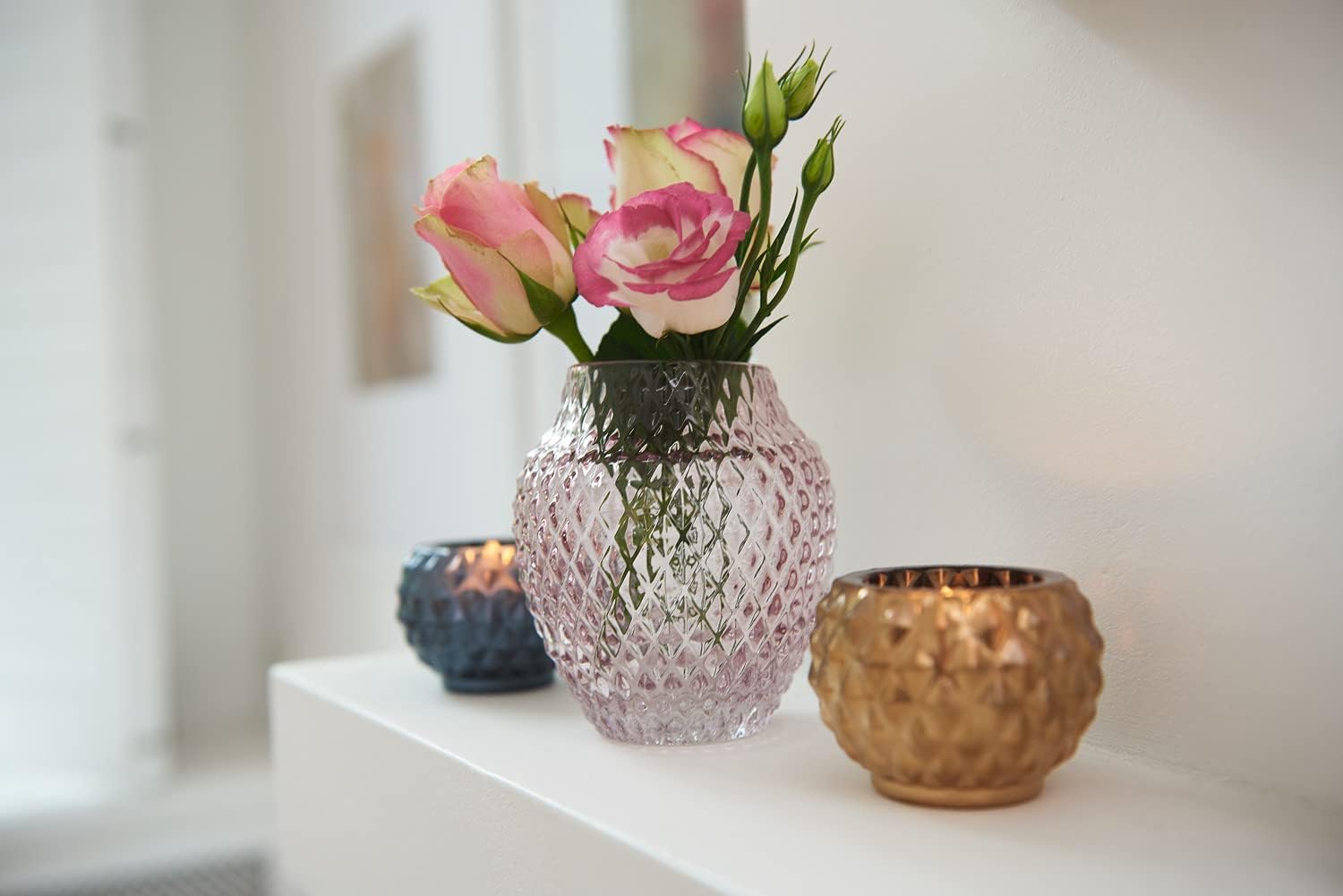 Vielseitig als Vase & Tischlicht: Dank der größeren Öffnung und bauchigen Form kann die Vase auch als Block-Kerzenhalter & Windlicht verwendet werden - Die vVase eignet sich perfekt für frische, gebundene Sträuße, Trocken-Blumen & kleinere Zweige Farbenfroh und edel: Das rosa gefärbte Glas der Tisch-Deko überzeugt mit einem schönen Glanz sowie der exklusiven Relief-Optik, die tolle Lichtreflexionen auslöst Handgefertigtes Unikat: Die Vase ist ein handgemachtes, einzigartiges Produkt - Das Blumenglas hat dank des handwerklichen Herstellungsverfahrens Unikat-Charakter - Um lange Freude an der Poesia Vase zu haben, empfiehlt sich die Reinigung per Hand Hochwertiges Design: Leonardo steht für feines & innovatives Design - Die Serie Poesia überzeugt mit einer eleganten Optik - Die Glas-Vase ist eine schöne Dekoration fürs eigene Zuhause und eine liebevolle Geschenkidee Lieferumfang & Maße: 1 rosa bauchige r&e Vase, Maße: 22,5 x 19 x 19 cm (HxBxT), Durchmesser Fuß 10 cm, Durchmesser oberer Rand 12 cm, Gewicht: 1000 g, Volumen Randvoll 4 l | قیمت یورویی : 20.42€