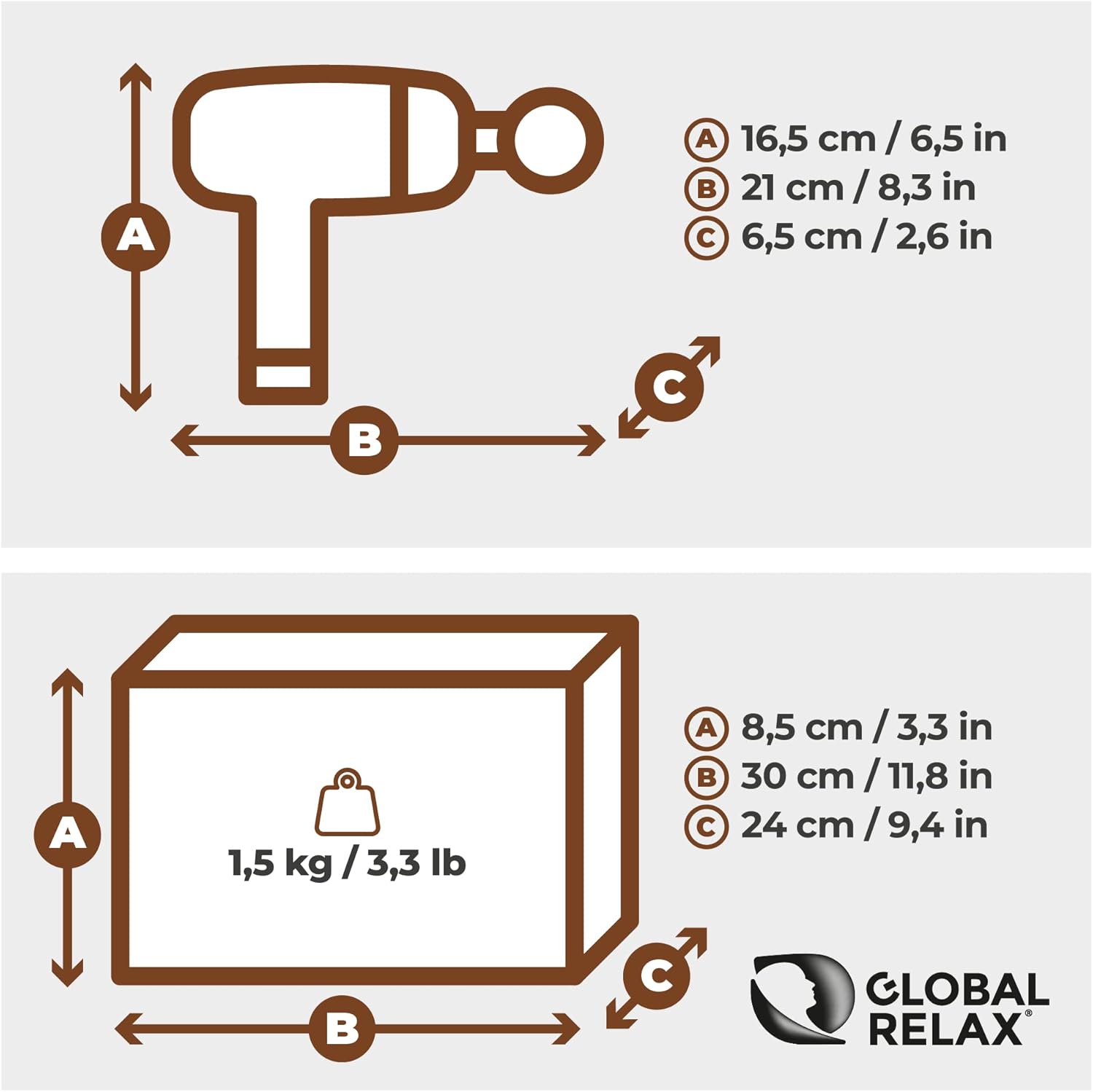 GLOBAL RELAX® | TAIKO MINI Massagepistole für tiefes Gewebe und Bänder | Muskel-Perkussion | 6 Köpfe | Tragbar I Wiederaufladbar I Ergonomisch | Erholung nach dem Training | قیمت یورویی 75.99€