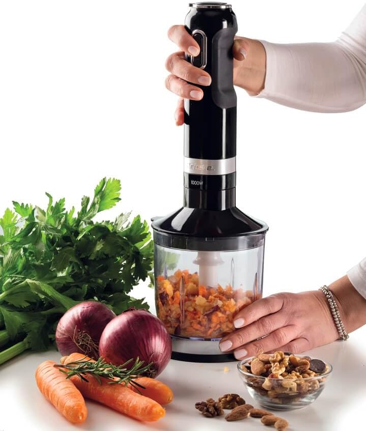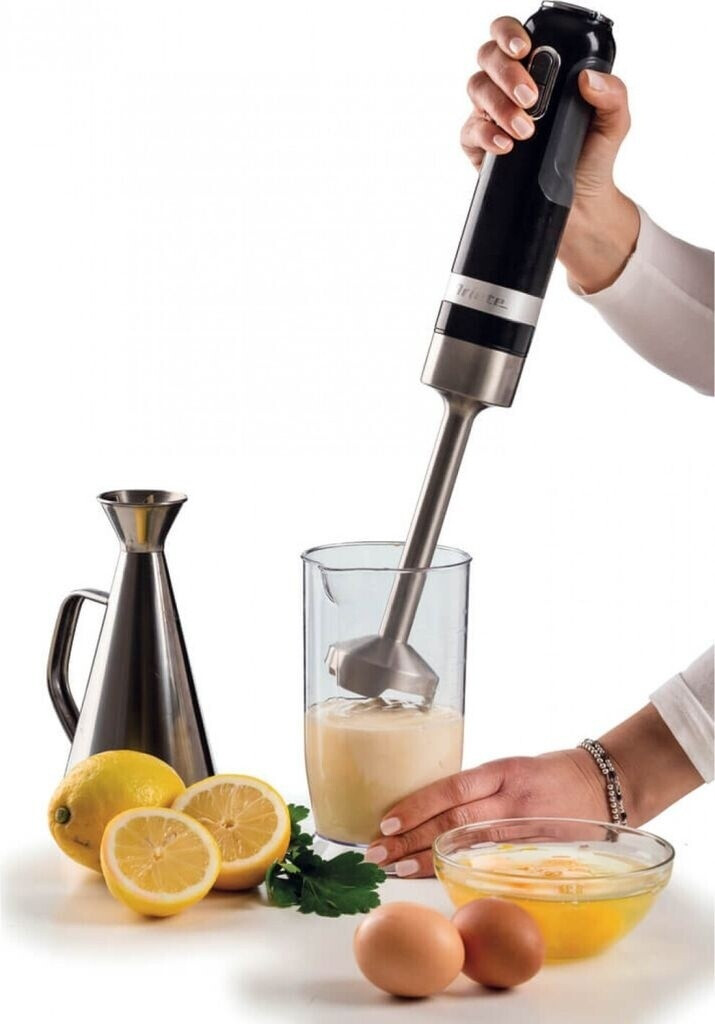 این دستگاه دارای دکمه توربو، کنترل سرعت و دو سری جداگانه برای گوشت کوب و همزن است. استفاده آسان، صدای کم و شستوشوی راحت قطعات، آن را به گزینهای ایدهآل برای مصارف خانگی تبدیل کرده است. طراحی آن با سایر وسایل سری Moderna هماهنگ است.