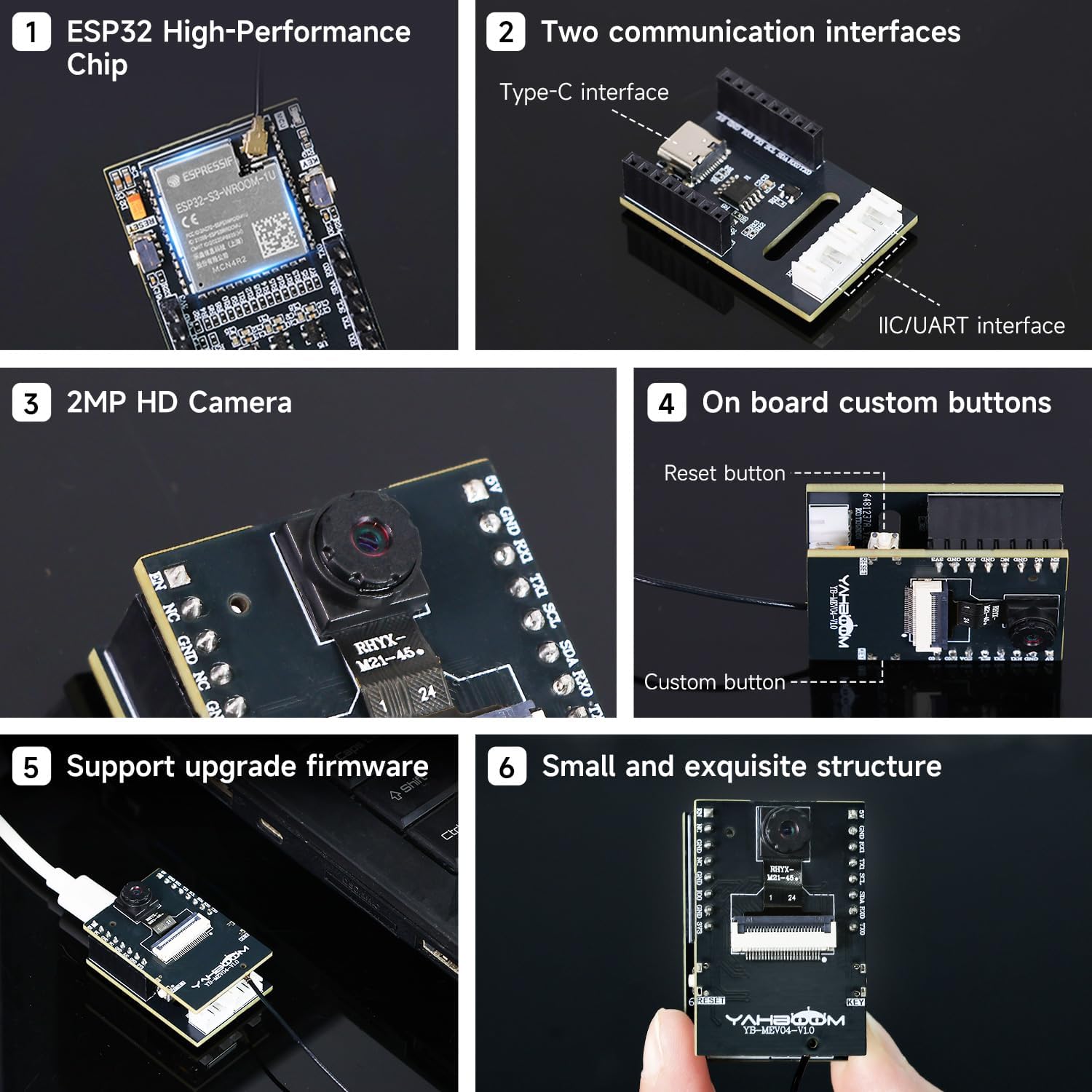 یاهبوم ESP32-S3 CAM دوربین 2 مگاپیکسلی، تراشه ESP32-S3، با برنامه کنترل از راه دور، دوربین داخلی بیسیم، آموزش پروژه، Python C Code (Cam Lite Module+Board+2DOF PTZ)