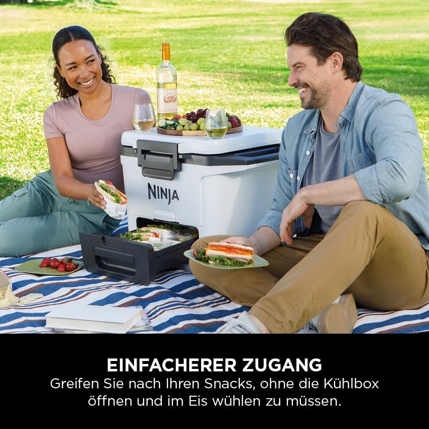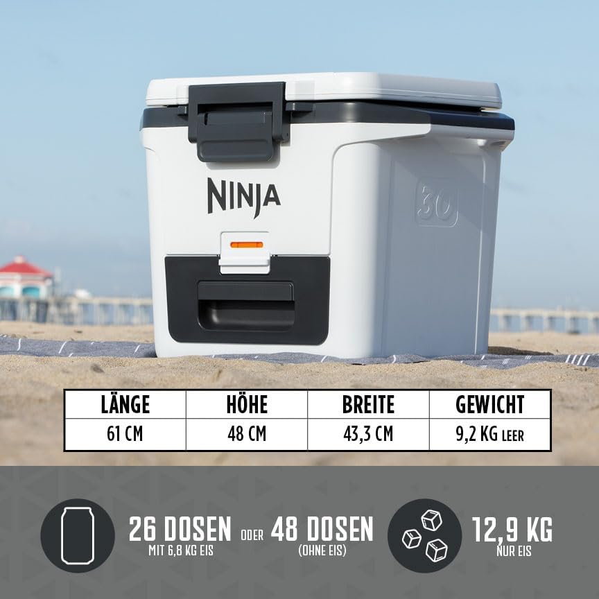 FROSTVAULT TECHNOLOGIE: Die Trockenzone-Schublade hält Lebensmittel kühl, trocken und getrennt. Lagern Sie bei lebensmittelsicheren Temperaturen (unter 4,5°C) tagelang. Greifen Sie leichter auf Ihre Lieblingsartikel zu, ohne durch Eis zu graben LANGANHALTENDE EISBEWAHRUNG: Hält das Eis bis zu 5 Tage lang. Perfekt für Reisen, Campingausflüge, Picknicks, Grillpartys, Roadtrips und mehr 30-QUART / 28-LITER-KAPAZITÄT: Platz für bis zu 48 Dosen (ohne Eis) oder 26 Dosen mit Eis. Viel Platz für all Ihre Lieblingsgetränke ROBUST & SICHER: Kann auch als praktische Sitzgelegenheit genutzt werden. Hochbelastbare Konstruktion. Leicht zu transportieren mit strapazierfähigen geformten Tragegriffen. Abschließbarer Deckel und Schubladenriegel. Einhändig leicht zu öffnen ENTHÄLT: Ninja FrostVault 30-Quart / 28-Liter-Kühler mit integrierter Trockenzone-Schublade. Abmessungen: H: 48 cm B: 43,3 cm T: 61 cm. Gewicht: 9,2 kg. Farbe: Wolkenweiß Kostenlose 5-Jahres-Garantie (bei Registrierung bei Ninja) | قیمت یورویی : 144.99€