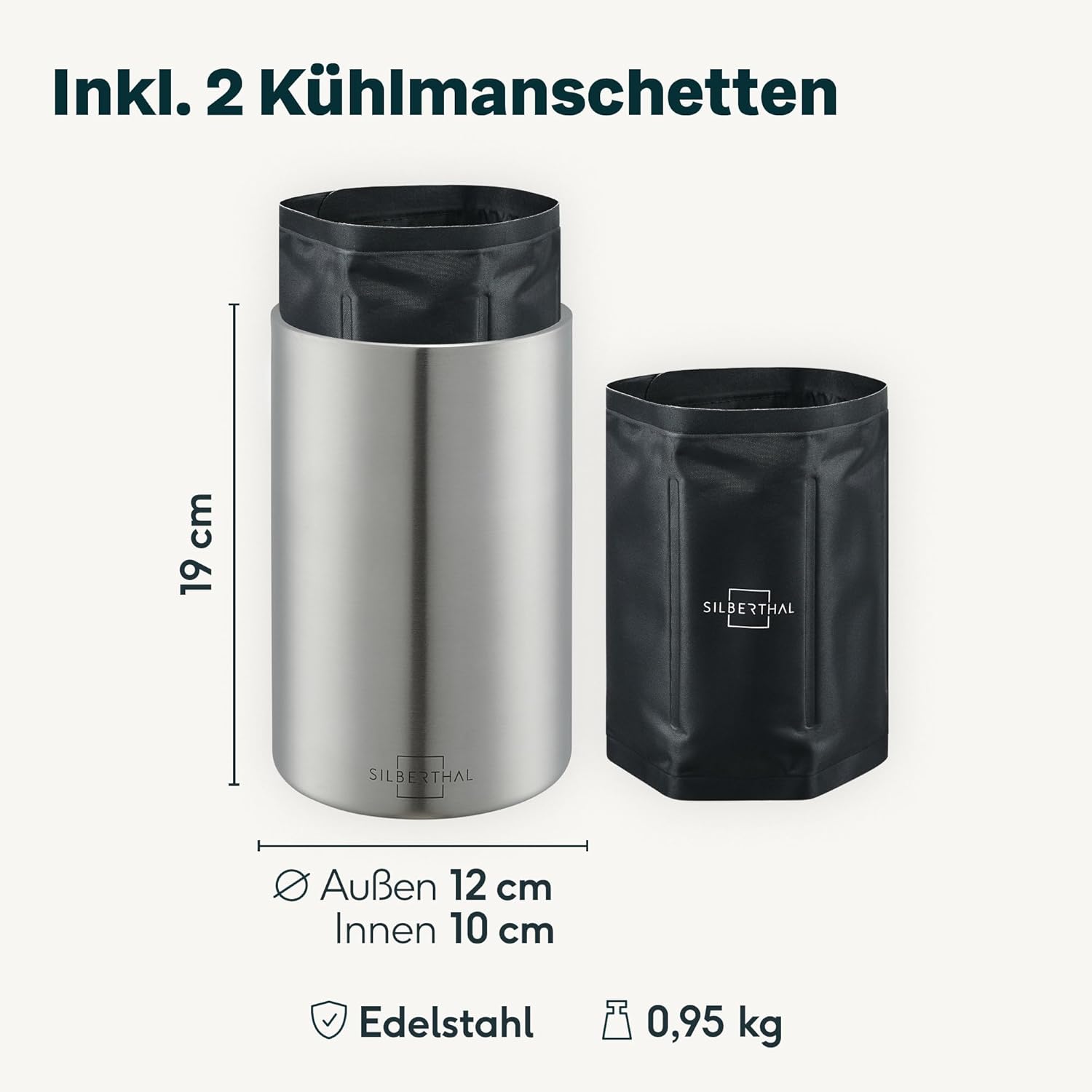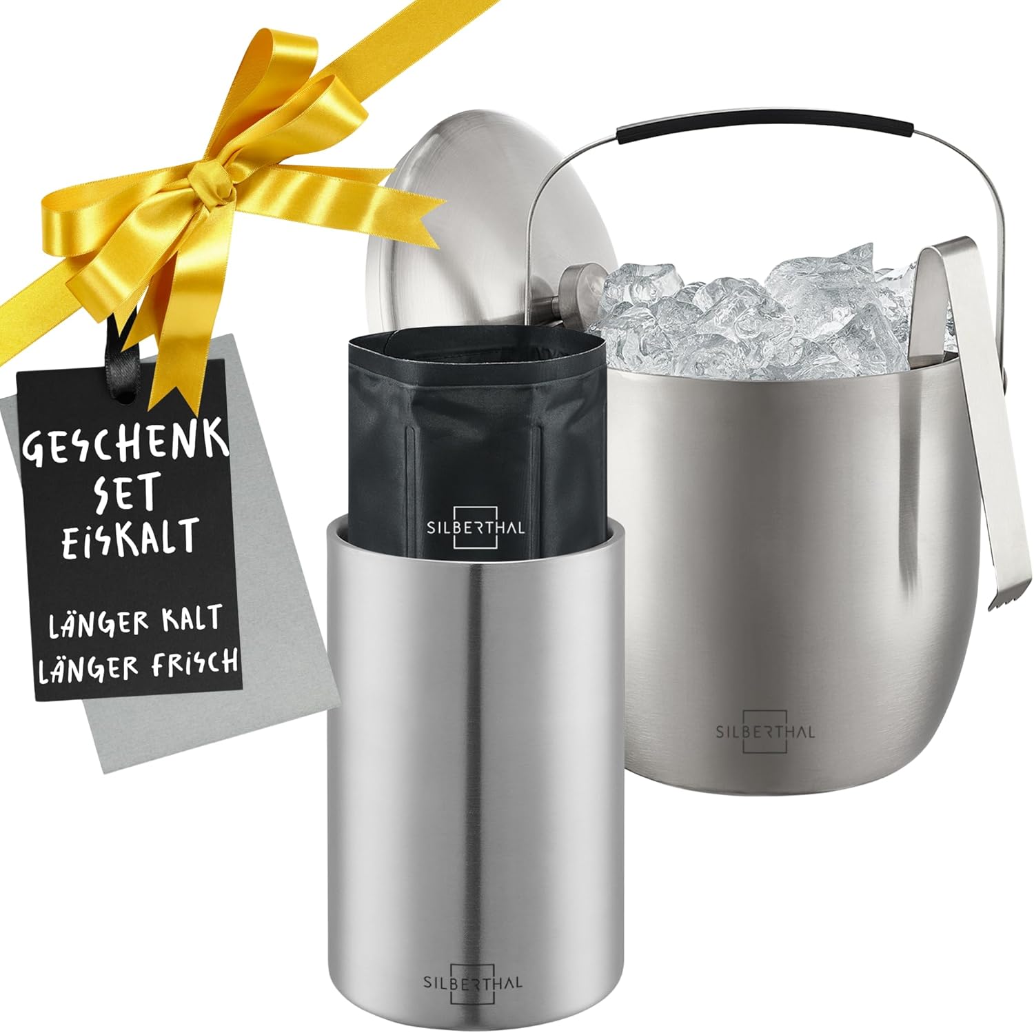 SILBERTHAL Weinkühler Edelstahl & Eiswürfelbehälter 3l mit Deckel und Zange - Flaschenkühler Set - mit 2 Kühlakkus - Praktisches Weinzubehör und Bar Accessoire Weinkühler & Eiseimer Set | قیمت یورویی 59.95€
