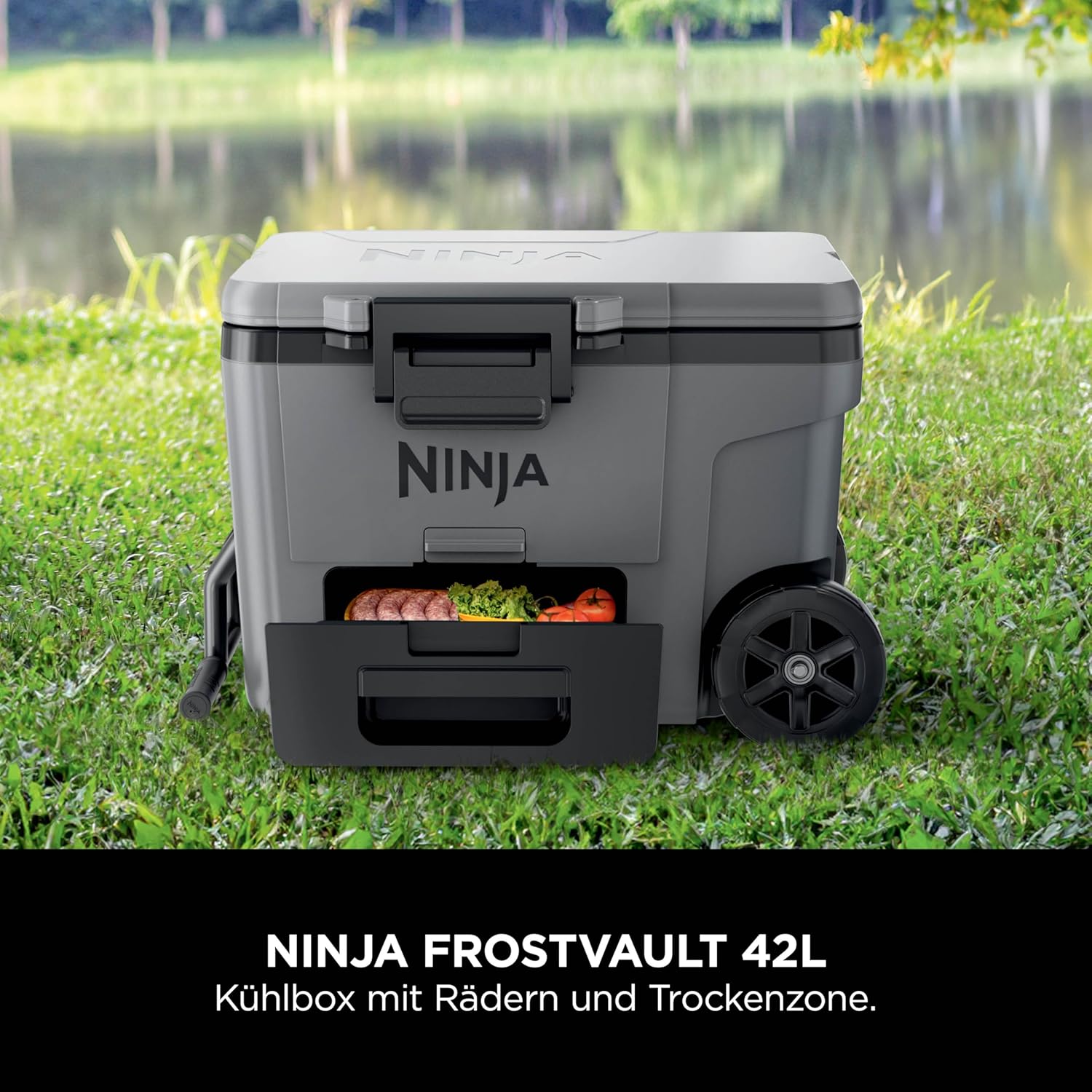 Ninja FrostVault Kühlbox mit Rollen und Isolierung, integrierter Dry Zone Schublade mit Kühlschranktemperatur, hält EIS tagelang, bietet Platz für bis zu 68 Dosen, Schiefergrau, FB245EUGY | قیمت یورویی 248.99€