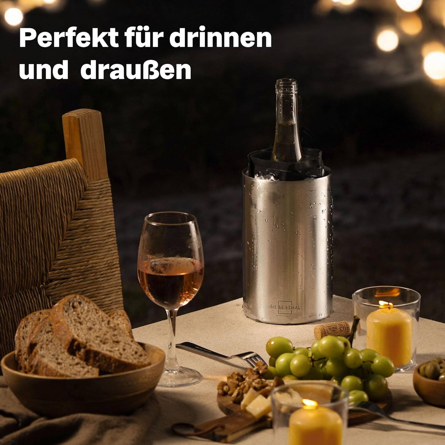 SILBERTHAL Weinkühler Edelstahl Doppelwandig mit 2 Kühlakkus - Aktive Kühlung mit Kühlmanschetten - Ideal für Weißwein und Rosé | قیمت یورویی 37.95€