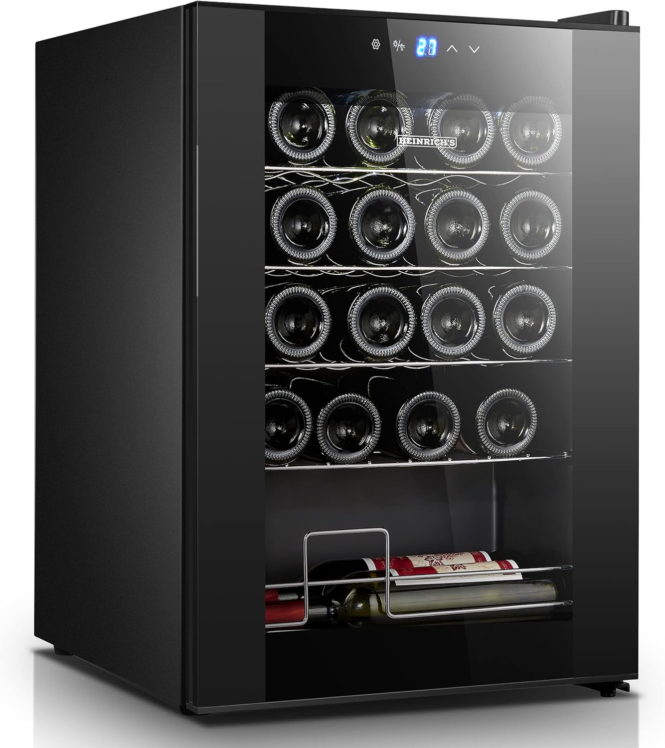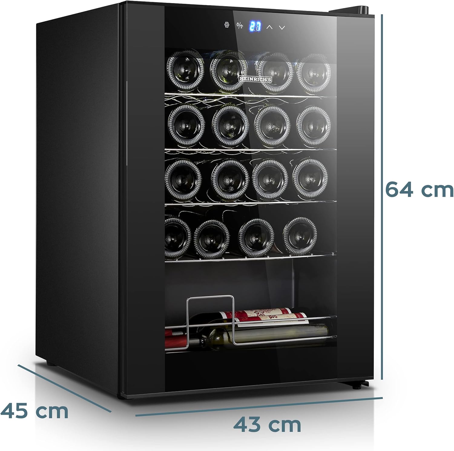 Heinrich´s HEINRICHS Weinkühlschrank, Getränkekühlschrank Schmal, Kühlschrank mit Glastür, Touch-Temperatureinstellung, LED-Innenraumbeleuchtung, Weinkühler mit Kühlung von 5bis18°C (53L/20 Flaschen) 53 Liter | قیمت یورویی 249.99€