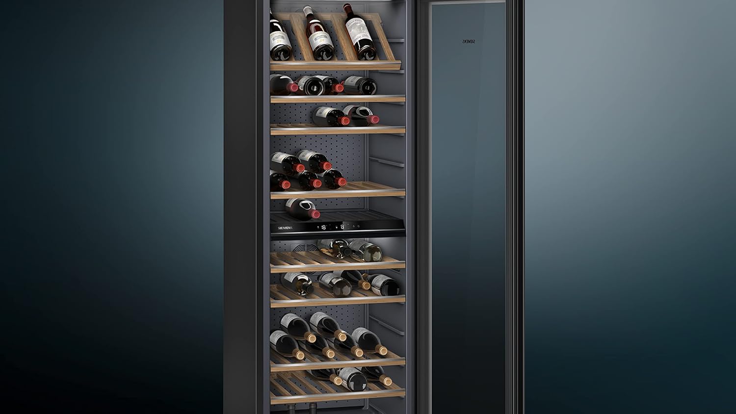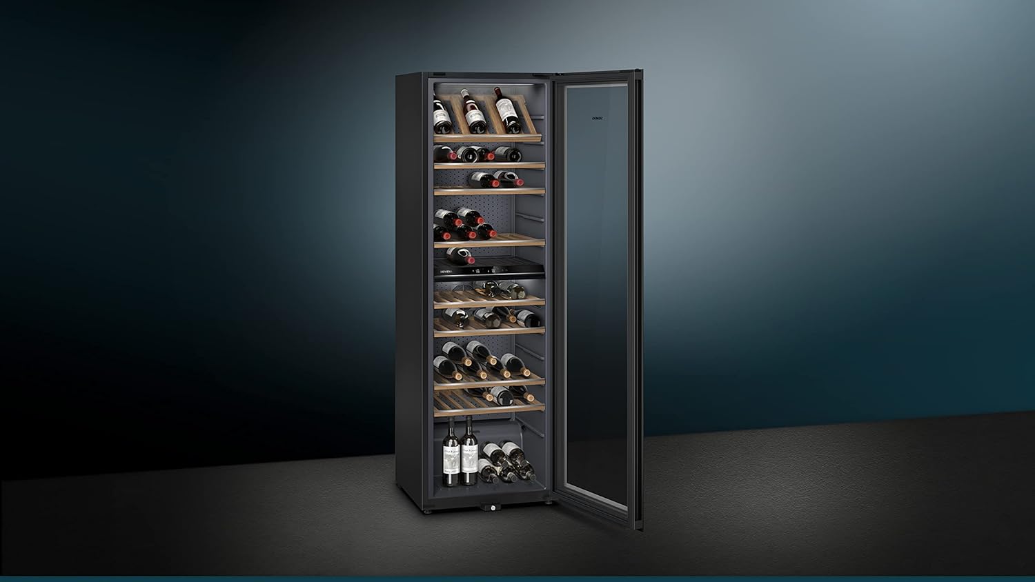 یخچال شراب SIEMENS KW36KATGA iQ500، 186 در 60 سانتی‌متر، 199 بطری، دما: 7-19 درجه سانتیگراد، دو منطقه دمایی کنترل شده جداگانه، 370 لیتر