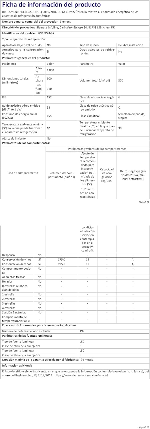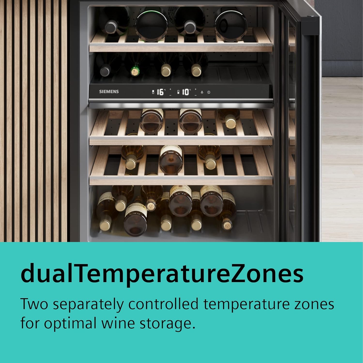 SIEMENS KW36KATGA iQ500 Weinkühlschrank, 186 x 60 cm, 199 Flaschen, Temperatur: 7-19 °C, Zwei separat gesteuerte Temperaturzonen, 370 L | قیمت یورویی 1689€